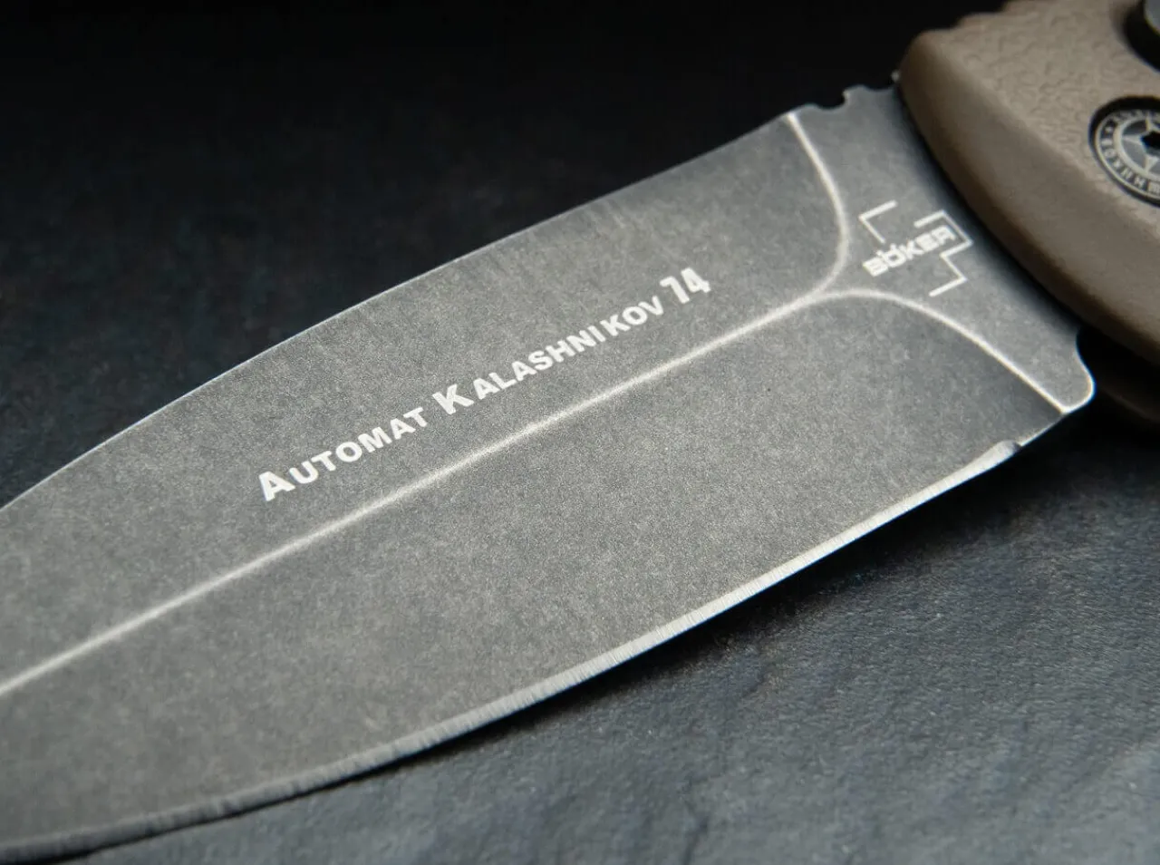 The Boker Plus Aks-74 Brown Dagger Smokewash From The Kalashnikov Series Is Certainly One Of The Most Popular Models In Our Range And Has Been Produced In Numerous Different Variants Over The Years. The Brown Aluminum Handle Is Strongly Reminiscent Of The Bayonet Of The Famous Assault Rifle, And The Raised Textured Panels Also Provide A Secure Grip In Any Situation. The Uncoated Spearpoint Blade Is Made Of Stainless D2 And Can Be Secured By Slide Lock In Addition To The Push Button. With Catch Strap Eyelet And Practical Clip (Tip-Up/R).Translated With Www.Deepl.Com/Translator (Free Version)