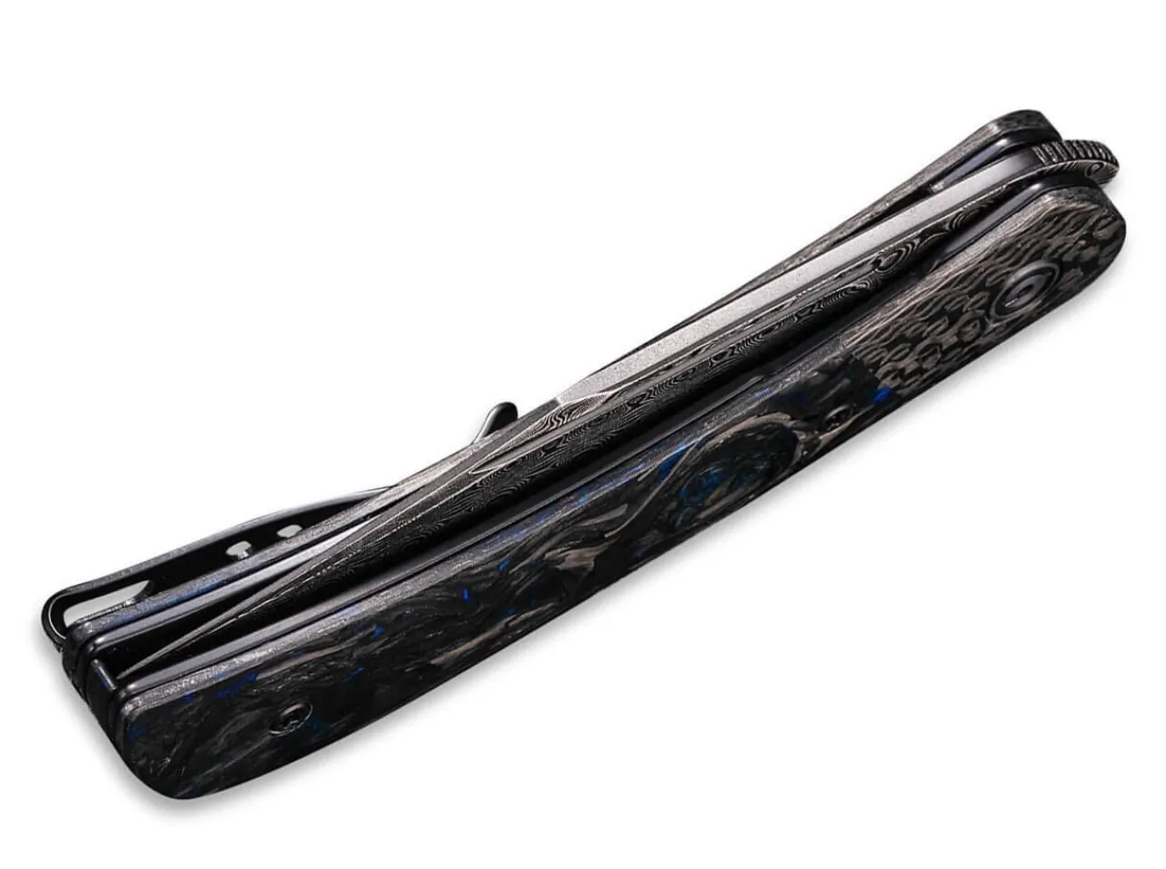 Influenced By The Spirit Of The Long Range Mountains In The Appalachians, The Civivi Appalachian Drifter Ii Cf Blue Damascus Cuts Its Way Through All The Rough Everyday Cutting Tasks. The Blade Made Of Classy Damascus Is Opened With A Nail Nick And Secured By The Sturdy Linerlock. The Handle Made Of Blue Stabilised Wild Carbon Fibre Follows The Shapes Of The Gentle Hills Of The Mountain Range And Lies Securely In The Hand. Supplied With A Clip (Tip-Up/R).