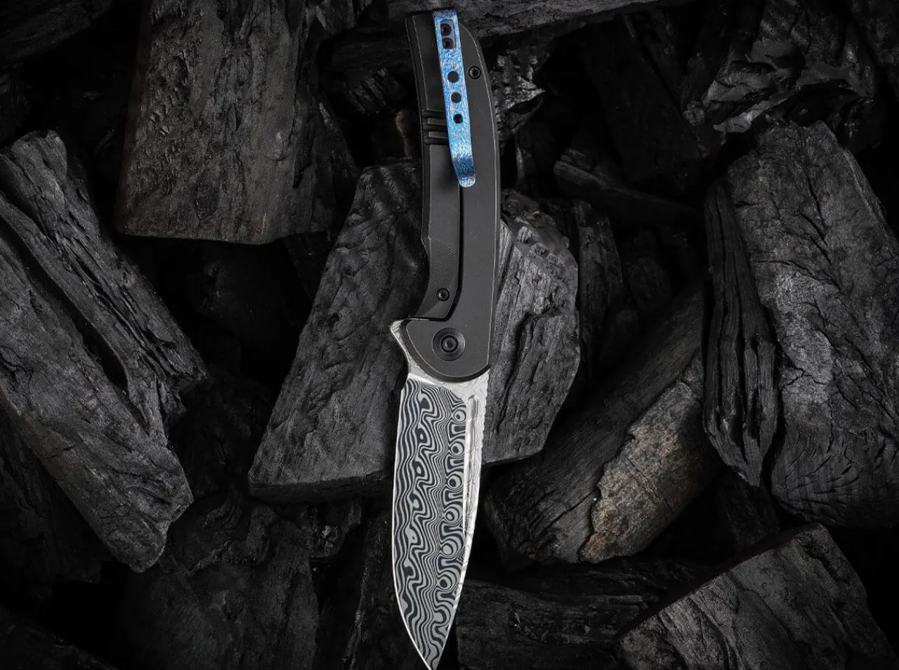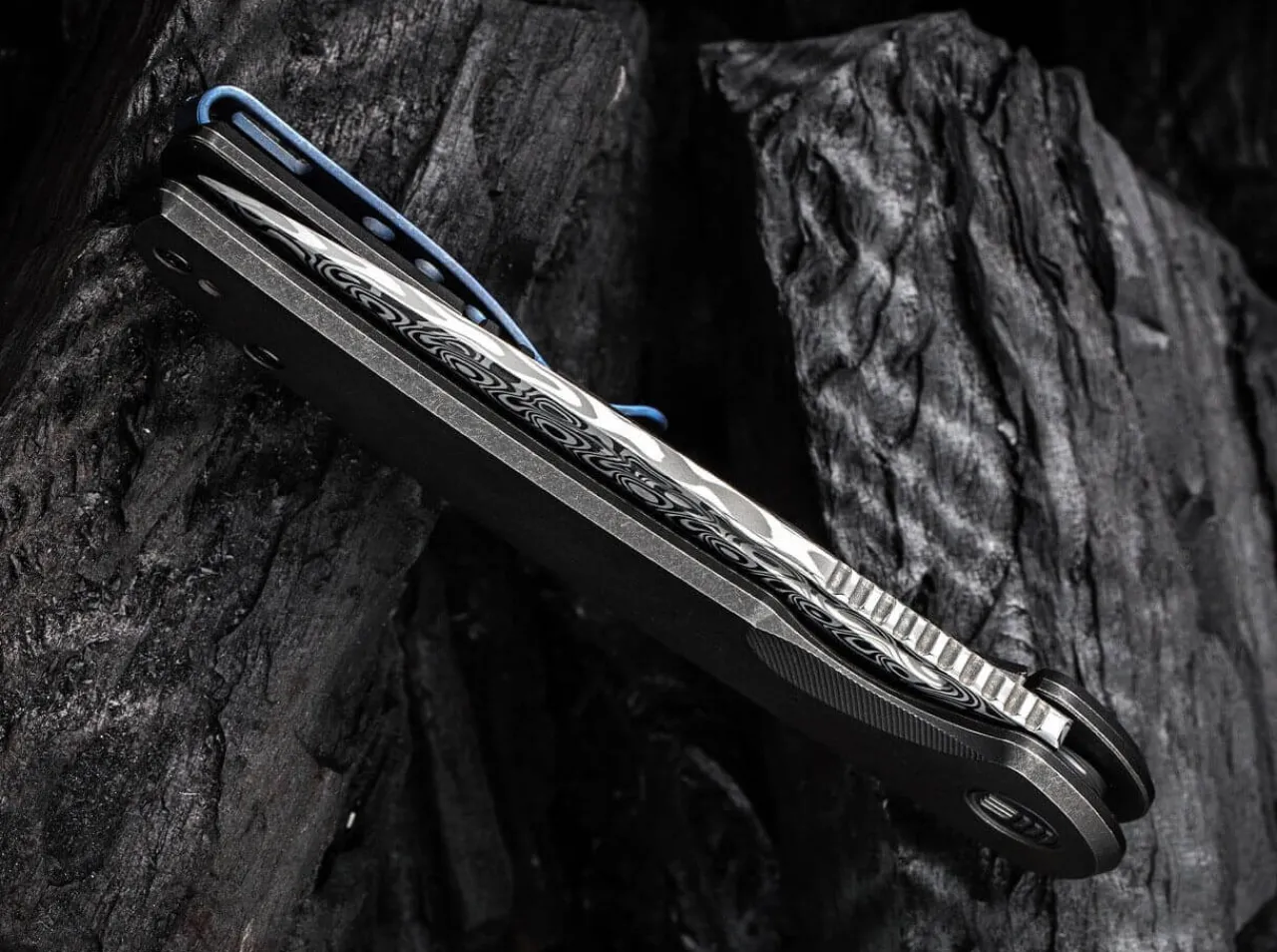 Beacon Damascus Titanium Black|WE Knife Discount