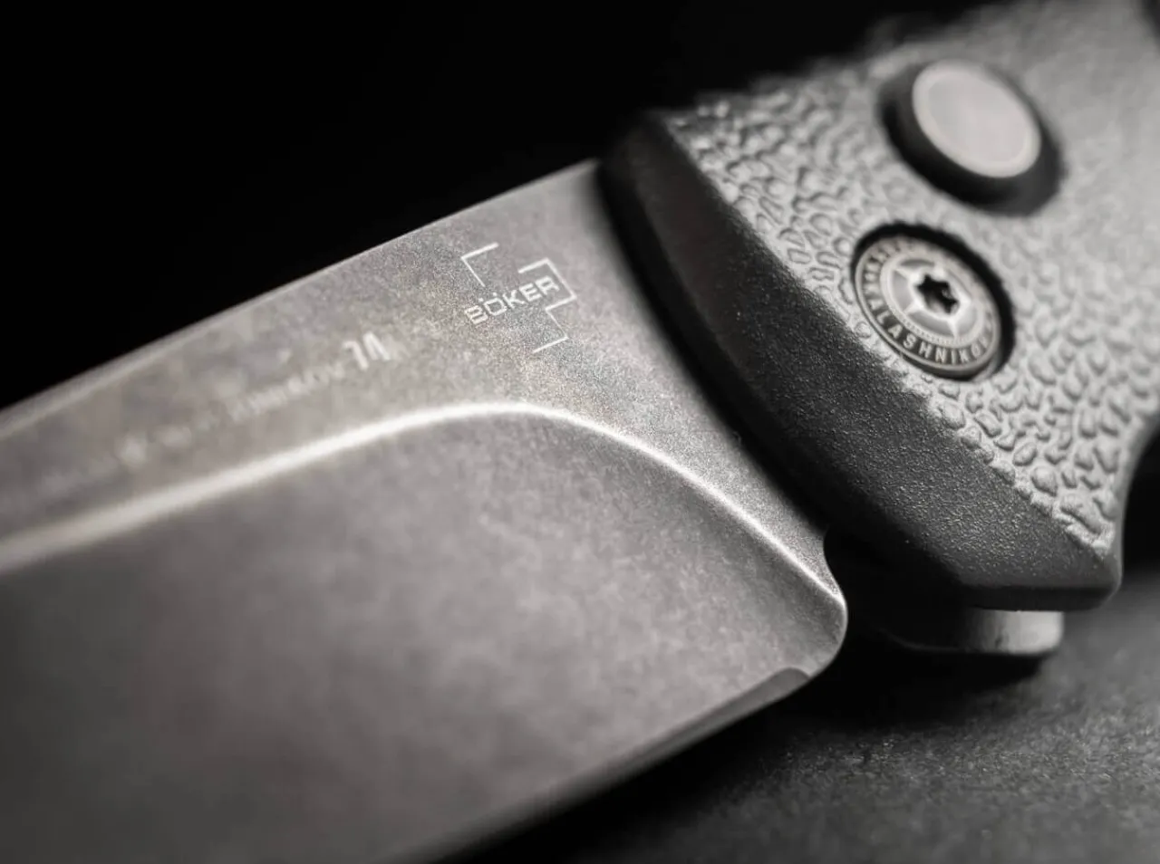 The Boker Plus Aks-74 From The Kalashnikov Series Is Certainly One Of The Most Popular Models In Our Range And Has Been Produced In Numerous Different Variants Over The Years. The Black Aluminum Handle Is Strongly Reminiscent Of The Bayonet Of The Famous Assault Rifle And The Raised Structural Tracks Provide A Secure Grip In Any Situation. The Stonewash Blade Is Made Of Aus-8 Stainless Steel And Can Be Secured By Slide Lock In Addition To The Push Button. With Clip (Tip-Up).