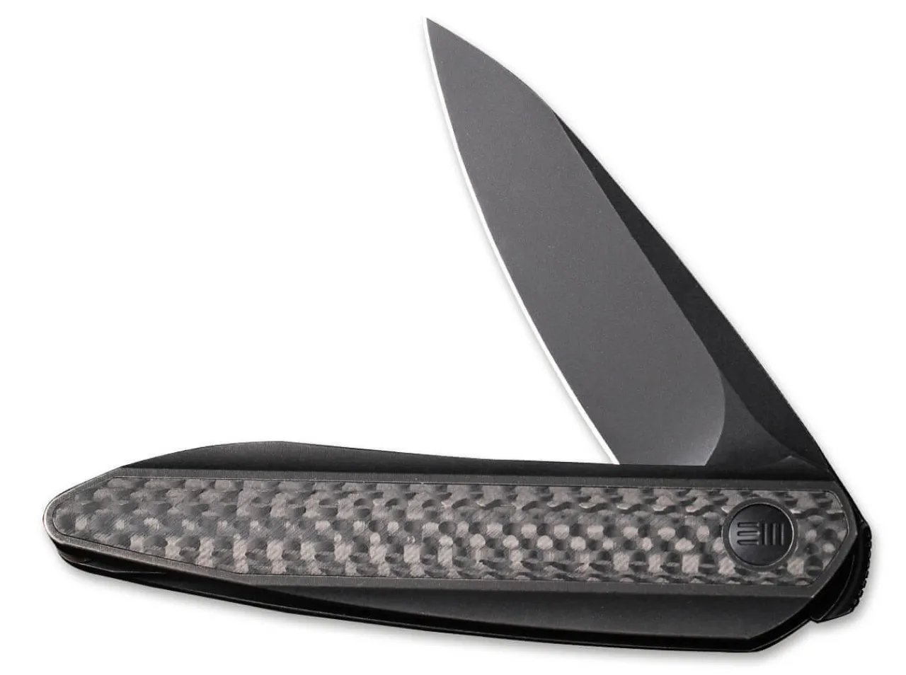 Das Elegante We Knife Black Void Wartet Mit Klarer Formensprache Und Einem Edlen Materialmix Auf. Wahrend Die Schwarze Klinge Aus Pulvermetallurgischem Cpm-20 Cv Souveranitat Ausstrahlt, Uberzeugt Der Titangriff Mit Schalen Aus Kohlefaser Durch Seine Sichere Handhabung. Geoffnet Wird Das Messer Mit Dem Eleganten Flipper Und Gesichert Wird Die Kugelgelagerte Klinge Per Linerlock. Mit Titanclip (Tip-Up/R).