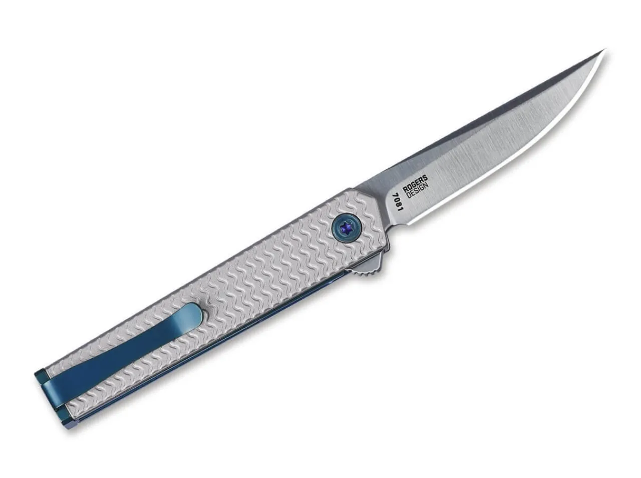 The Extremely Slim Ceo By Richard Rogers Expands The Leadership Floor Of Crkt And Is Now Available In Another Variant With A Discreet Flipper. The Gentleman Pocket Knife Proves Its Leadership Qualities With A Ball Bearing Droppoint Blade Made Of 12C27, Which Is Securely Locked By Linerlock. The Knife Can Be Carried Not Only Classically In The Trouser Pocket, But Also Like A Ballpoint Pen In The Shirt Pocket Due To Its Light Weight. The Sturdy Handle Made Of Lightweight Aluminum Is Provided With An Industrial Corrugated Metal Look, Which Is Harmoniously Emphasized By The Liners Kept In Blue, The Convertible Clip (Tip-Up/L+R) And Screws.