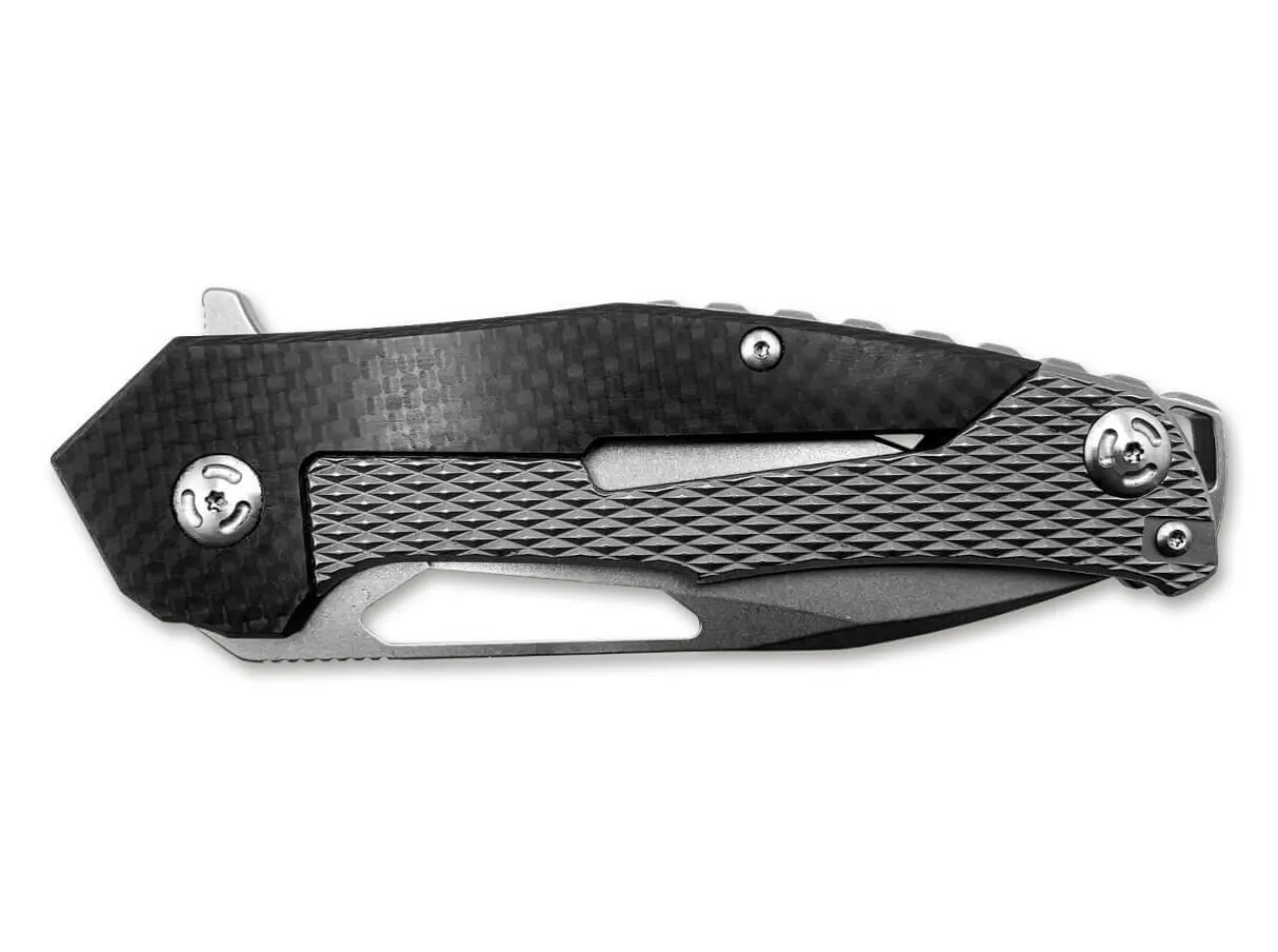 The Willumsen Chibs Stone Black Is Ready For The Next Adventure. Its Slim, Tactical Design Is Perfect For Cutting Rough Materials And Its Mirrored Handle Gives The Knife Its Unique Look. The D2 Blade Opens By Flipper And Is Locked By The Secure Framelock. The Titanium And Carbon Fibre Handle Is Partially Textured For A Secure Grip. With A Lanyard Hole And A Clip (Tip-Up / R).