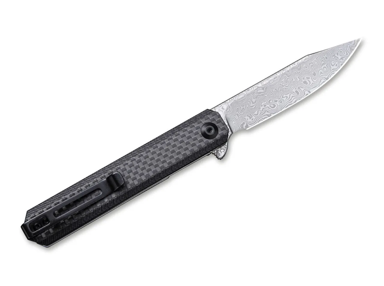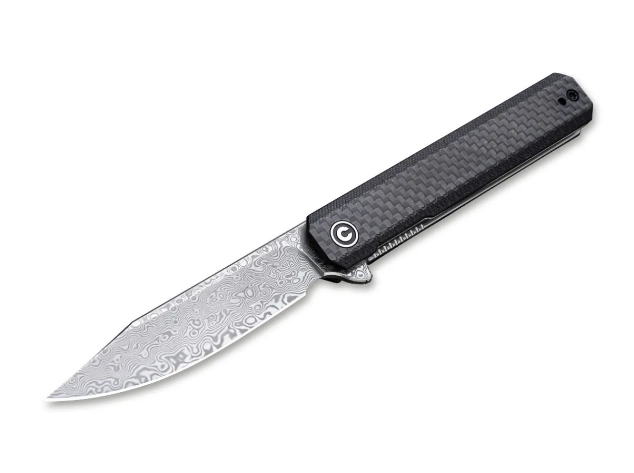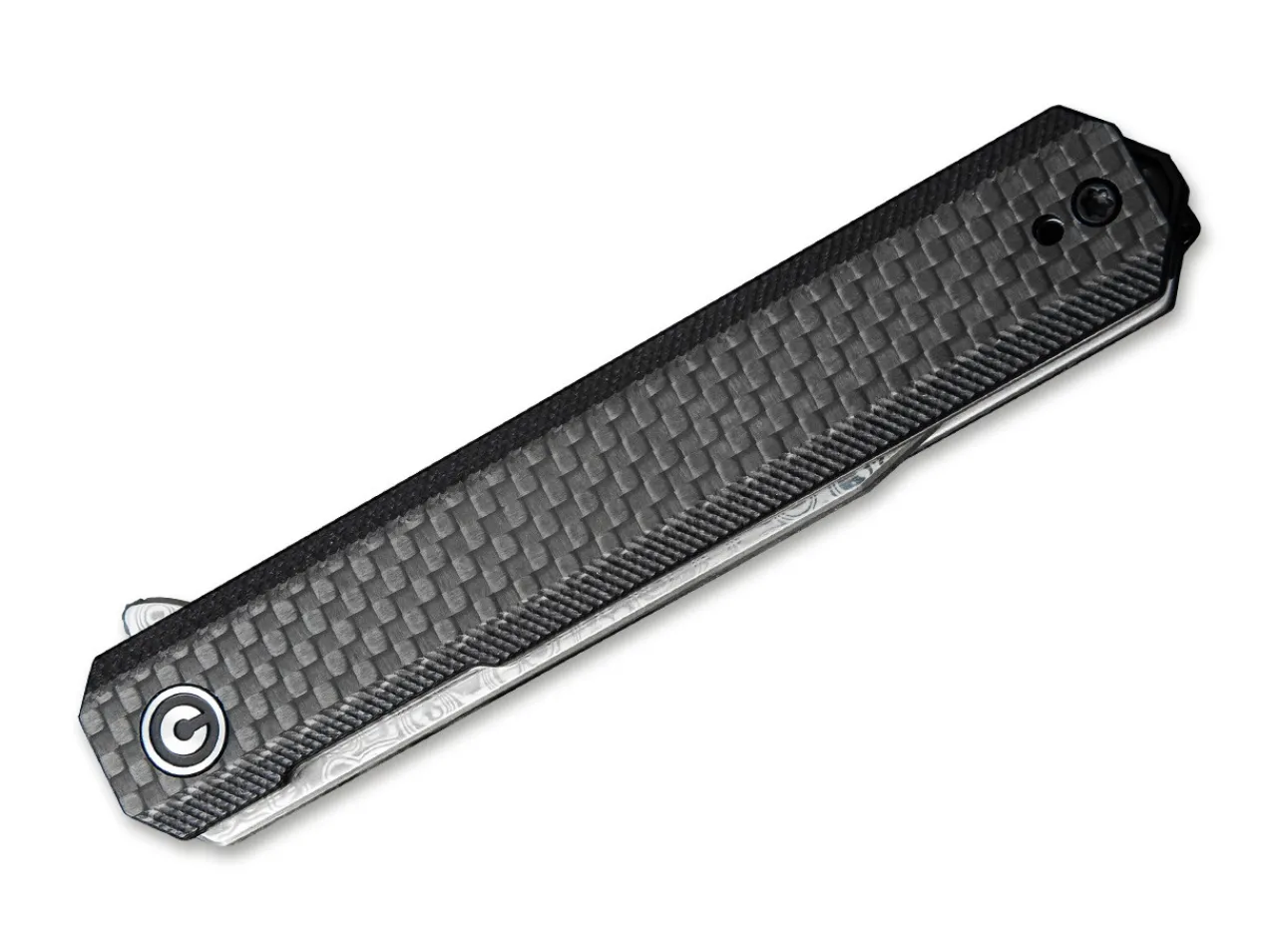 The Civivi Chronic Has An Ultra- Slim Design With A Narrow, Hollow Ground Damascus Steel Blade. The Satin-Finish, Clip Point Blade Opens With A Flipper And Makes Quick Work Of Slicing Tasks. A Stainless Steel Linerlock Locks The Blade Securely In Place. The Simple, Black G10 Handle With A Carbon Fiber Overlay Completes The Look Of The Knife. With Lanyard Hole And Detachable Clip (Tip-Up).