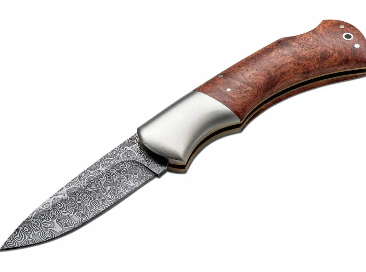 The Classic Is A Real Delight For The Hand. The Rounded Edges And Smooth Handle Lines Ensure That You Will Not Want To Put The Classic Down. Nickel Silver Bolsters With Noble Finish, A Versatile Drop Point Blade And The Lanyard Hole Make The Knife Complete. The Stainless Raindrop Damask Blade Is Wonderfully Complemented By The Brushed Nickel Silver Bolsters And Scales Made Of Stabilized Maple Burl Wood. It Comes In A Sophisticated Fine Wooden Box.