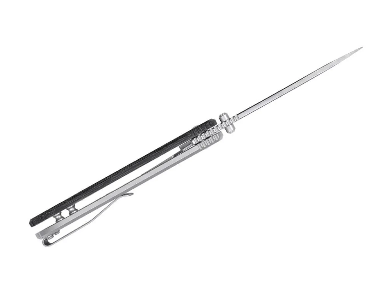A Conifer As A Luminary: The Kizer Coniferous V Does Not Needle, But Offers A Thoroughly Pointed And Sharp 154Cm Blade For Everyday Cutting Tasks. A Choice Of Flipper Or Thumb Stud Is Available For Opening, While The Sturdy Liner Lock Keeps The Pocket Knife Properly Locked. The Visual Highlight Is The Hybrid Handle, Whose Front Handle Shell Is Made Of Black Micarta And The Rear Of Noble Titanium. The Stonewash Finish And The Convertible Deep-Carry Clip (Tip-Up) Round Off The Features.