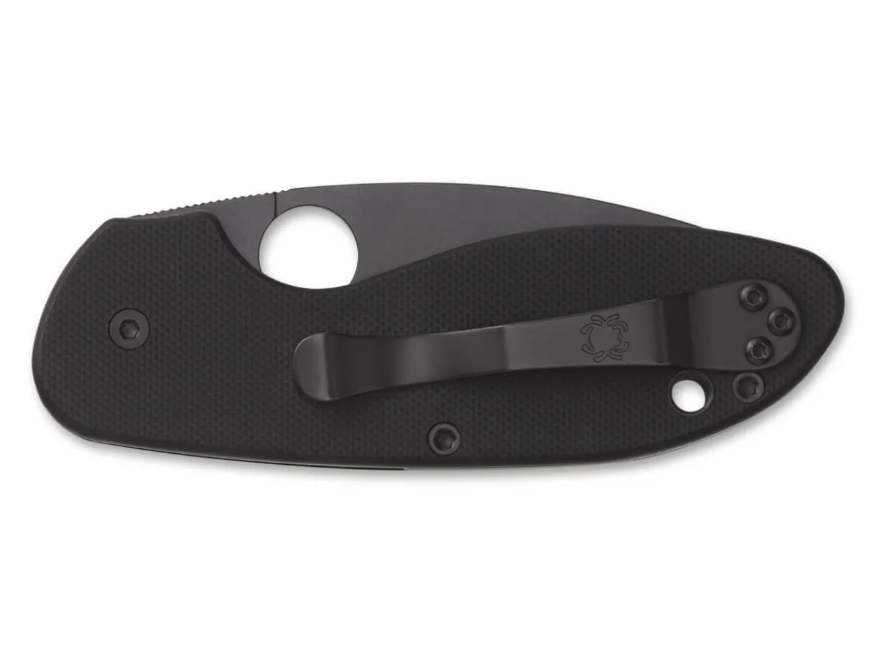 Das Efficient Ist In Der Komplett Schwarzen Version Ein Neuzugang Unter Den Gunstigeren Einsteigermessern Im Spyderco-Sortiment. Die Ergonomische Und Kompakte Form Des Messers Mit Einer Flachgeschliffenen Klinge Aus 8Cr13Mov Machen Es Zu Einem Uberaus Leistungsfahigen Begleiter. Durch Die Vorgelagerte Zeigefingermulde Sind Unterschiedliche Griffarten Fur Eine Vielzahl An Verschiedenen Arbeiten Moglich. Die Skelettierten Edelstahlplatinen Und Der Linerlock Geben Die Notige Kraft Und Zuverlassigkeit. Umsetzbarer Clip (Tip-Up/L-R). Mit Fangriemenose.