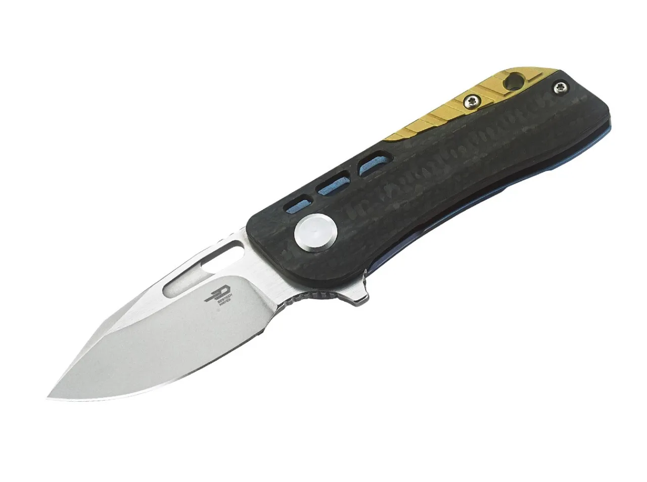 The Bestech Engine Is A Small, Handy Pocketknife With A Blade Made Of Powder-Metallurgical Cpm-S-35Vn.It Opens With A Flipper Or Thumb Opening And Is Secured By A Sturdy Framelock.The Versatility And High Utility In Everyday Life In Combination With The Compact Design Make This Model Very Special.While The Front Handle Scale Is Made Of Carbon Fiber, The Back Is Made Of Blue Anodized Titanium.The Gold Anodized Clip Creates Another Color Accent, Which Can Also Be Found On The Front By The Lanyard Hole.