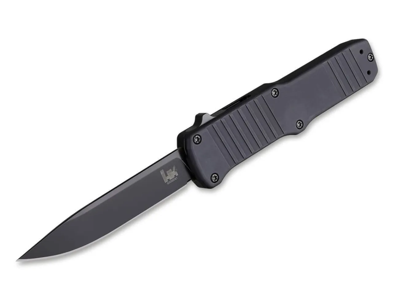Das Heckler & Koch Hadron Ist Ein Ein Schlankes Und Extrem Schnelles Otf, Dass Von Hogue Gefertigt Wird. Es Verfugt Uber Eine Beschichtete Klinge Aus 154Cm, Die Sich Automatisch Aus Dem Griff Schiebt. Diese Hochprazise Mechanik Zeichnet Sich Durch Belastbarkeit Und Zuverlassigkeit Aus. Das Strukturierte Schwarze Aluminiumgehause Mit Gefrasten Rillen Liegt Sicher In Der Hand. Mit Clip.