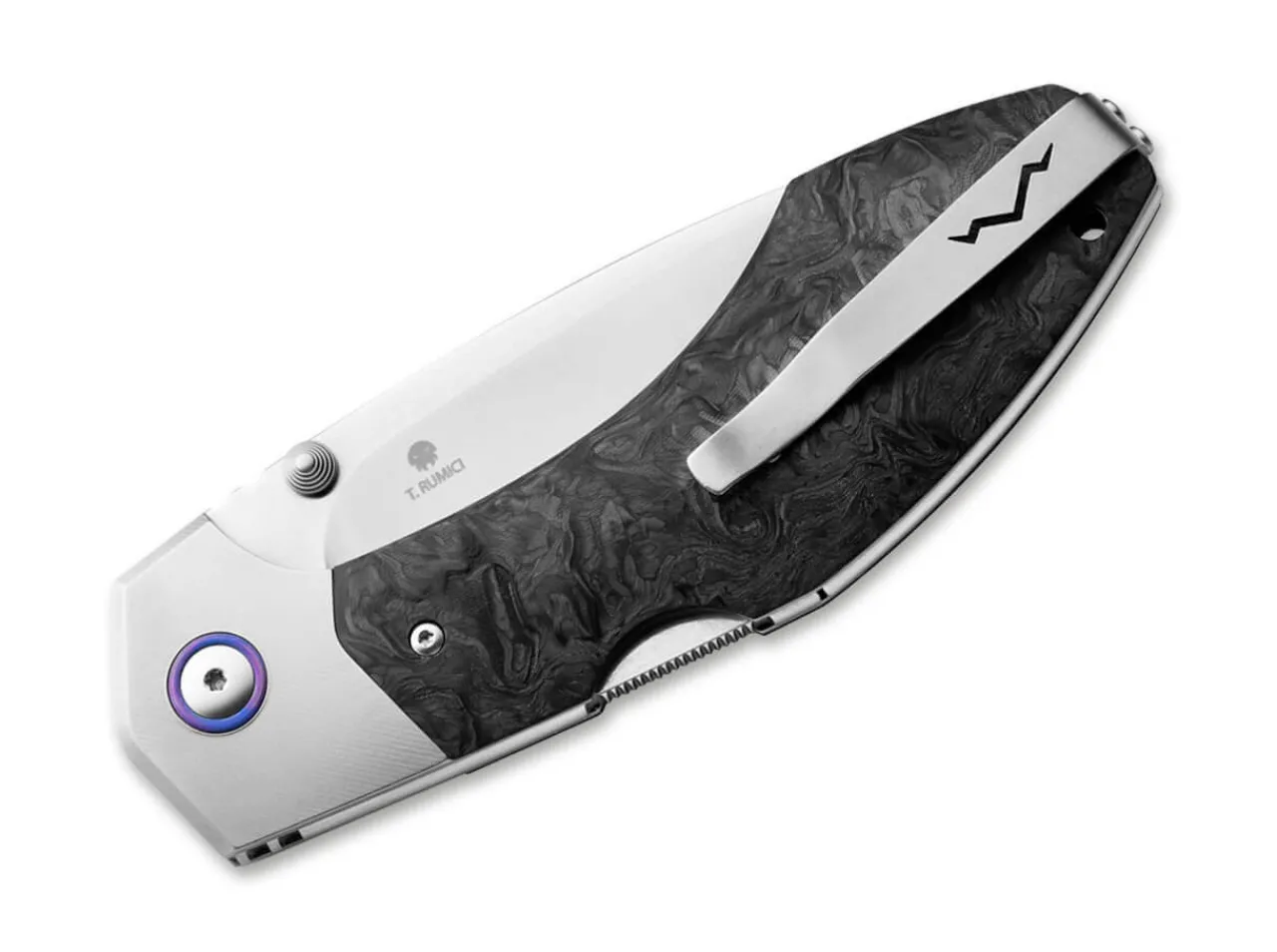 Tommaso Rumici Hebt Mit Dem Mkm Hero Einen Leibhaftigen Helden Aus Der Taufe. Ausgestattet Mit Einer Klinge Aus Bohler M390 Und Einem Mit Titanbacken Gesaumten Griff Aus Kohlefaser Erledigt Das Messer Schneidarbeiten Des Alltags Ohne Fehl Und Tadel. Daumenpin Und Backlock Verriegelung Unterstreichen Die Heldenhafte Anmutung Des Folders. Mit Fangriemenose Und Clip (Tip-Up/R) Sowie Hochwertigem Nylon Etui Sowie Den Torx Bits T6 Und T8.
