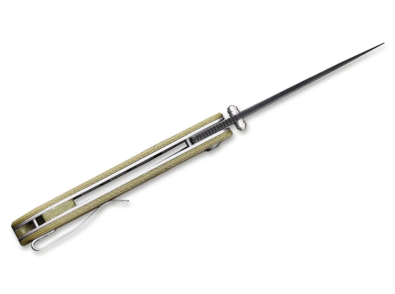 The Civi Imperium Damascus Micarta Olive Is Enthroned Above Things. Faithfully Serving The Feudal Folder, The Blade Of Imposing Damascus Watches Over The Realm Of Everyday Cutting. The Thumb Stud On Both Sides And The Linerlock Are Always On Hand To Advise The Pocket Knife. The Contoured Handle Made Of Imperial Micarta Fits Perfectly In The Hand And Gives The Knife A Stately Appearance. In Keeping With Its Status, The Civivi Empire Is Carried Around With A Palanquin In The Form Of A Clip (Tip-Up/R).