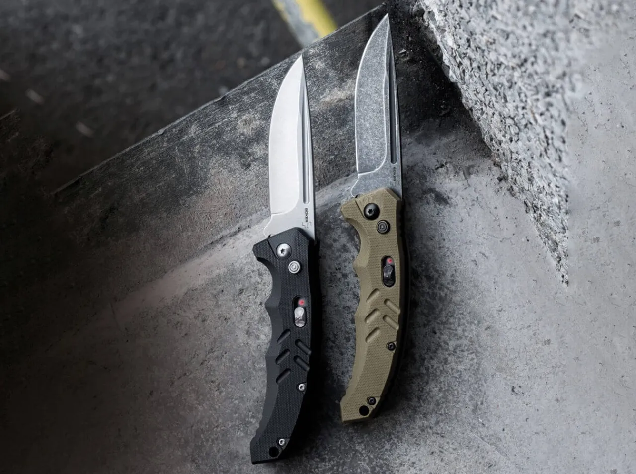 The Boker Plus Intention Was Designed As A Tactical Automatic Knife And Can Easily Handle All Tactical And Everyday Cutting Tasks. The Dark Stonewash D2 Blade Is Opened With A Push Button And Swings Open By Means Of The Tensioned Spring Behind It. The Knife Is Secured With A Well-Fitting Sliding Lock Protecting The User From Opening The Knife By Accident. The Ergonomically Shaped Handle Is Made From Textured G10 With A Fluted Thumb Rest And Deep Finger Choil For A Secure Hand Position. With A Lanyard Hole And Clip (Tip-Down).