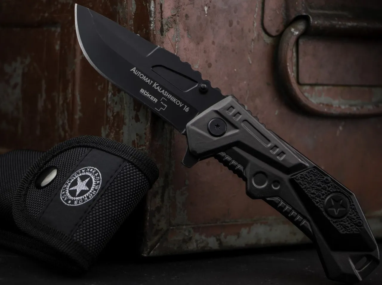 The Kal-16 Is Configured As A Massive Utility And Tactical Knife That Is Suited For A Wide Range Of Tasks With Its Wide Blade And The Generously Proportioned Thumb Ramp. The Liner Lock Knife Is Opened By Thumb Stud Or Flipper, Where The Latter Also Acts As A Hand Guard For Heavier Chores, Thus Increasing Operating Safety. Solid Steel Liners And Ergonomic Aluminum Scales In The Two-Tone Kalashnikov Design. Without Clip. Blade Steel 7Cr17. Shipped With Kalashnikov Belt Pouch Made From Reinforced Nylon.