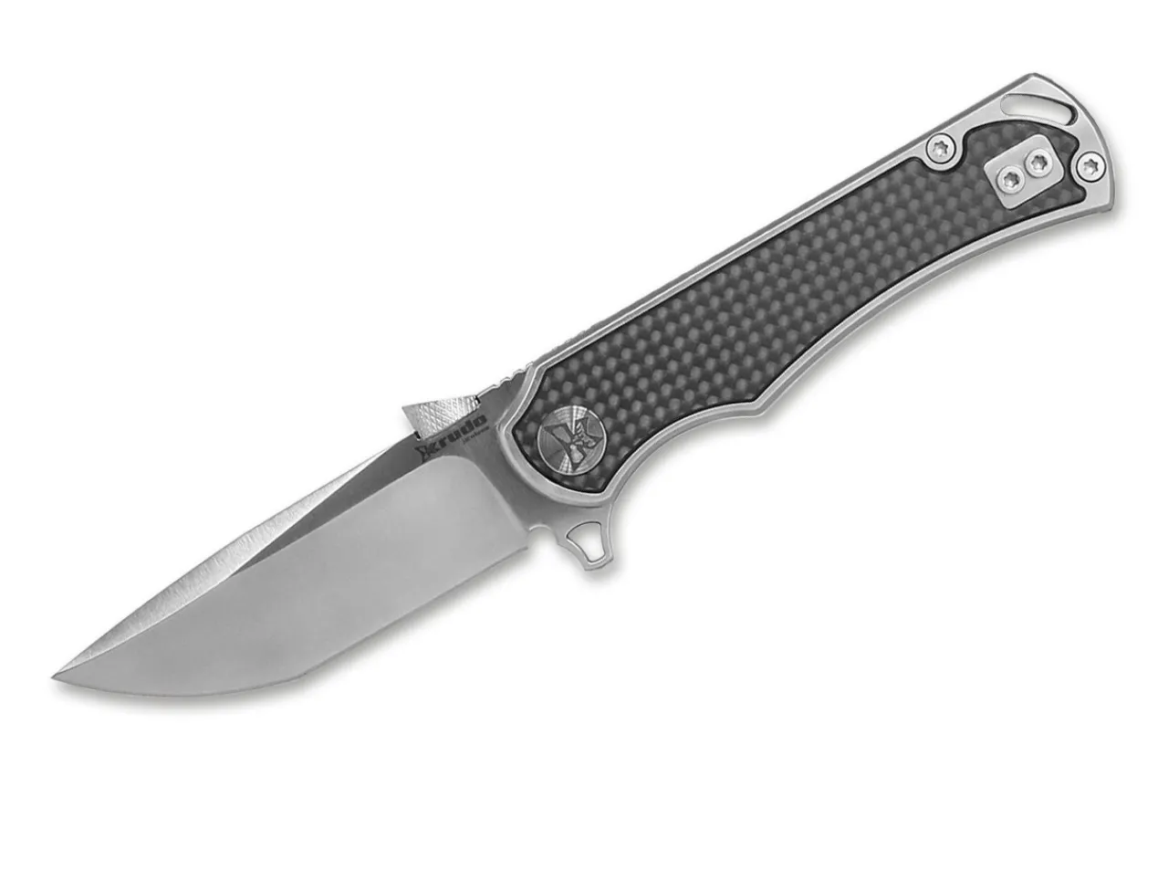 With The Karsino10, Krudo Has Toned It Down A Little, Going Even More In The Direction Of Edc And Versatile Everyday Use, Without Losing The Signature Krudo Style. The Clean Design And Subtle Tanto Grind Of The Blade Make For An Excellent Utility Knife. The Solid Stainless Steel Framelock Has Carbon Inlays And Features A Repositionable Clip (Tip-Up/L). In Typical Krudo Fashion, The Karsino10 Offers Several Opening Mechanisms, Including A Flipper, Front Flipper, Thumb Disc And Pocket Hook.