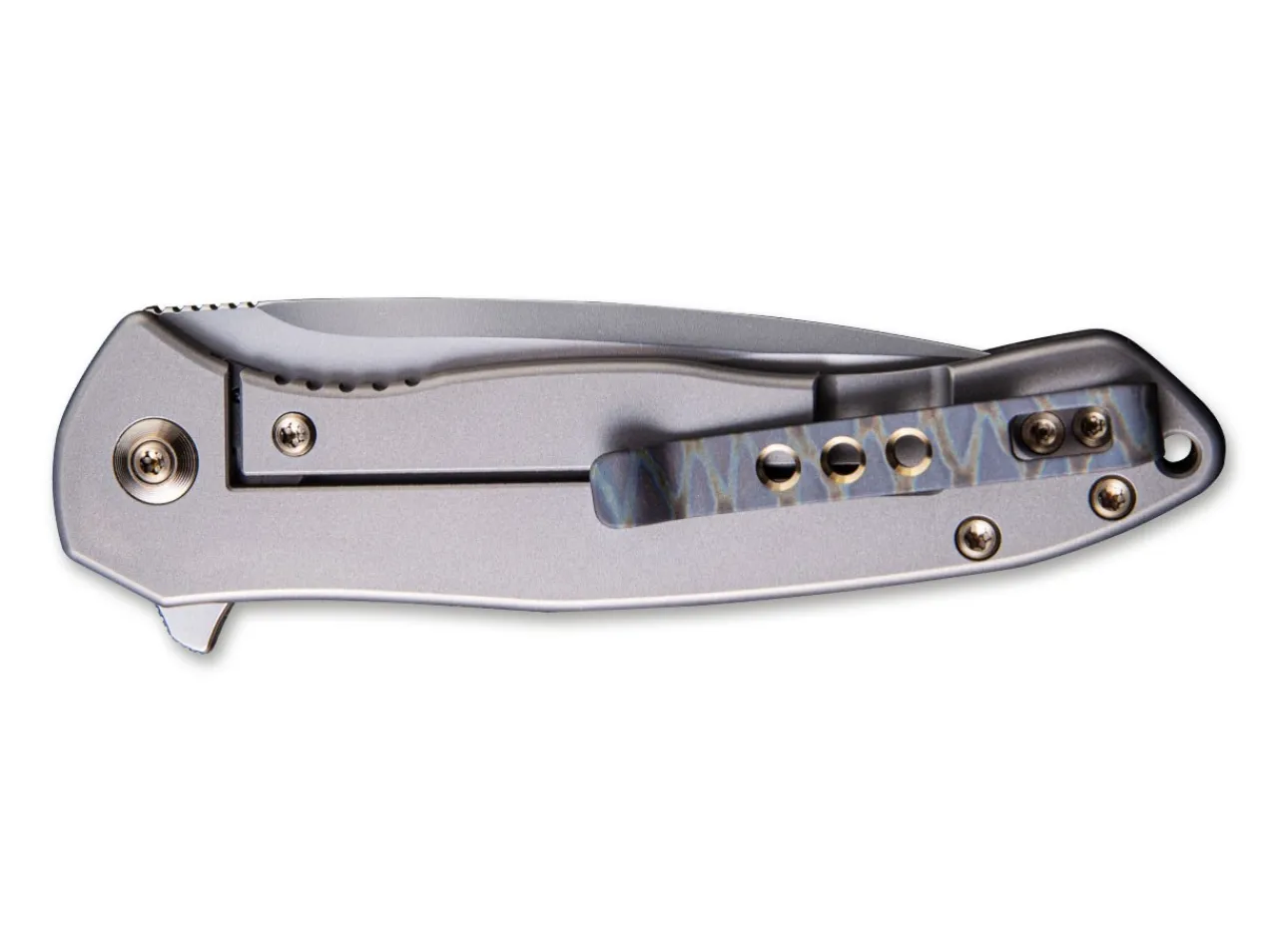 The We Knife Kitefin Is A Medium-Size, Universal Edc Knife With A Wide, Drop Point S35Vn Blade Featuring A Generous Finger Choil For Detailed Cutting. The Flipper Ensures Smooth Opening Of The Ball Bearing Mounted Blade And Also Serves As A Finger Guard. A Sturdy Framelock Locks The Blade Firmly In Position Allowing Safe Handling. The Kitefin Knife Series Is Available In Different Colored Handles And Styles. This Version Features Stylish Gray Titanium Handle Scales On The Back And Shredded Carbon Fiber On The Front. With Lanyard Hole And Reversible Deep-Carry Clip (Tip-Up).