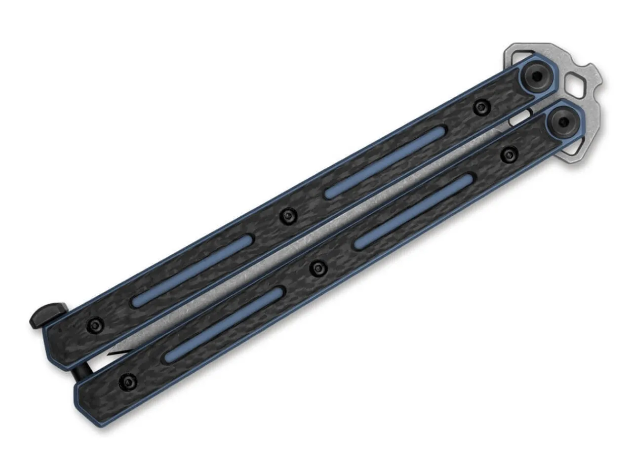 This Extra Lightweight Version Of The Kershaw Lucha Is Made Entirely In The Usa. The High-Quality Materials Of The Butterfly Knife Include The Blade Made Of Powder Metallurgy Cpm-20Cv Steel And A Blue Titanium Handle With Handle Scales Made Of Carbon. Performance At The Highest Level Is Achieved Through Kershaw’S Meticulous Design. For Example, The Blade Tapers So That The Tip Has More Weight To Swing More Evenly. The Lucha Features Two Kvt Ball Bearing Pivot Points For Extra Ease Of Use. The Handle Is Rounded For Effortless Rolling In The Hand. Even The Latch Is Rounded So It Won’T Catch When Flipped. The Latch Also Has A Positive Stop So It Never Touches The Blade.