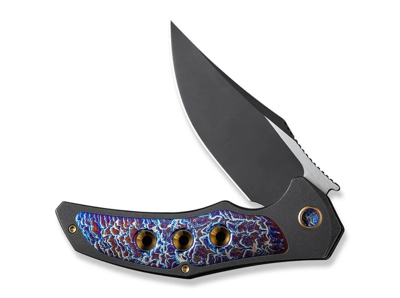 The We Knife Magnetron Exerts An Irresistible Attraction On The Knife World. The Reason For This Is The Contrast Between The Powder-Metallurgical Cpm-20Cv Blade And The Black Titanium Handle, Which Is Equipped With Three Openings And A Shimmering Flamed Titanium Inlay. The Ball-Bearing Clippoint Blade Is Opened Silky-Smooth Via Flipper, Whereas The Frame Lock Reliably Secures The Knife. With Tip-Up Clip(R).