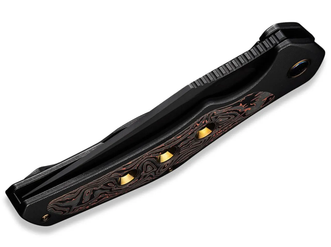 The We Knife Magnetron Exerts An Irresistible Attraction On The Knife World. The Reason For This Is The Contrast Between The Powder-Metallurgical Cpm-20Cv Blade And The Black Titanium Handle, Which Is Equipped With Three Openings And A Shimmering Foil Inlay In Copper Carbon Look. The Ball-Bearing Clippoint Blade Is Opened Silky-Smooth Via Flipper, Whereas The Frame Lock Reliably Secures The Knife. With Tip-Up Clip(R).