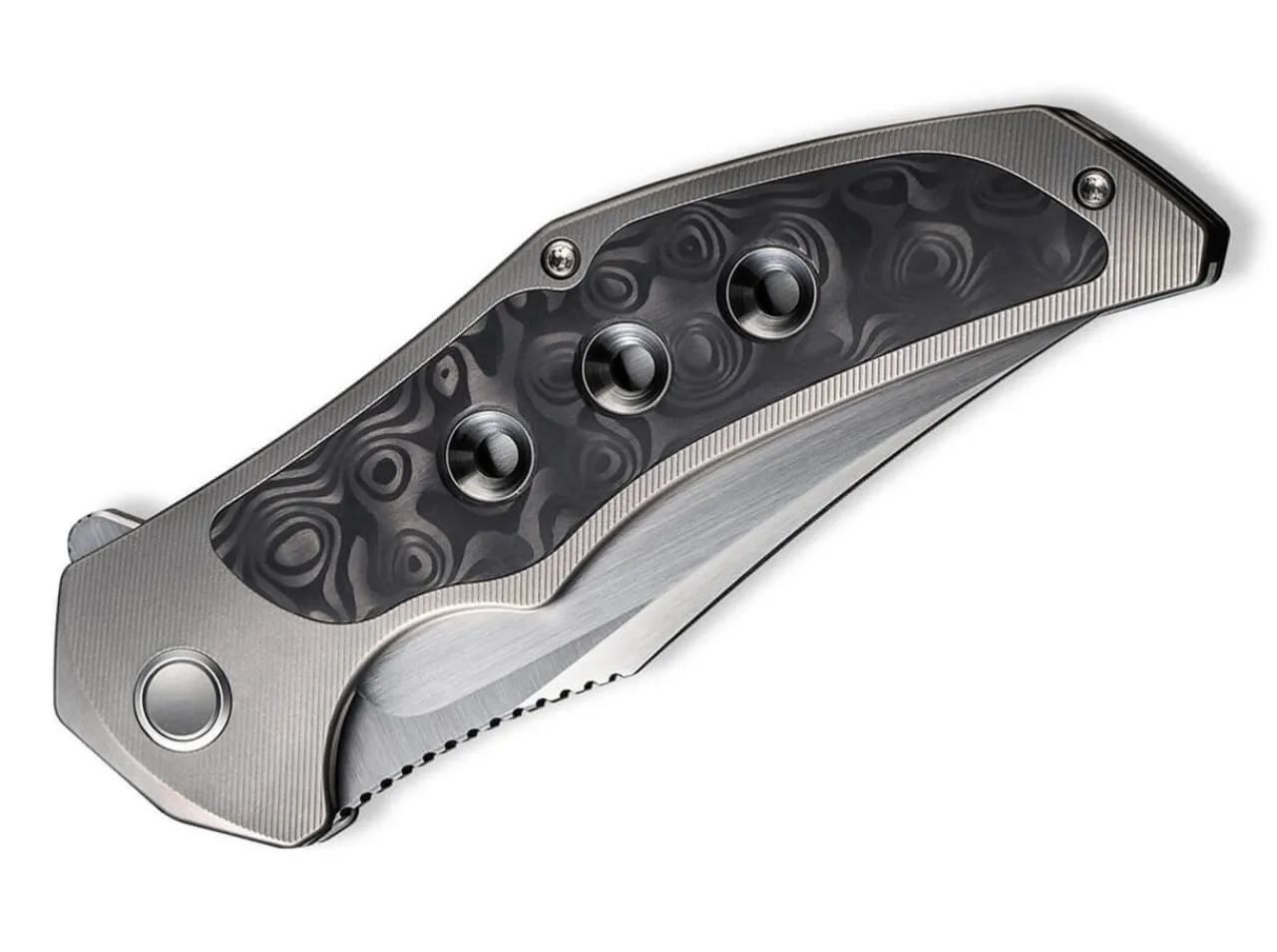 The We Knife Magnetron Exerts An Irresistible Attraction On The Knife World. The Reason For This Is The Contrast Between The Powder-Metallurgical Cpm-20Cv Blade And The Gray Titanium Handle, Which Is Equipped With Three Openings And A Shimmering Foil Inlay In Rose Carbon Look. The Ball-Bearing Clippoint Blade Is Opened Silky-Smooth Via Flipper, Whereas The Frame Lock Reliably Secures The Knife. With Tip-Up Clip(R).