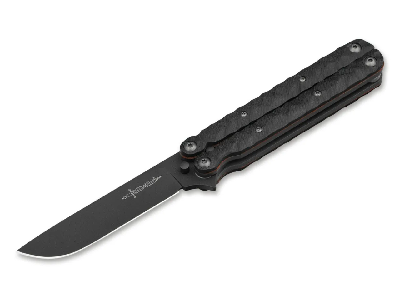 The Breeden Bali, Produced In Collaboration Between Fox And Mil-Tac, Is An Exceptional Balisong With A Coated Blade Made Of N690. The Structured Handle Scales Made Of G10 Are Held Together Magnetically So That The Typical Latch At The End Of The Handle Is No Longer Necessary. The Modern, Tactical Design Is By Jason Breeden.