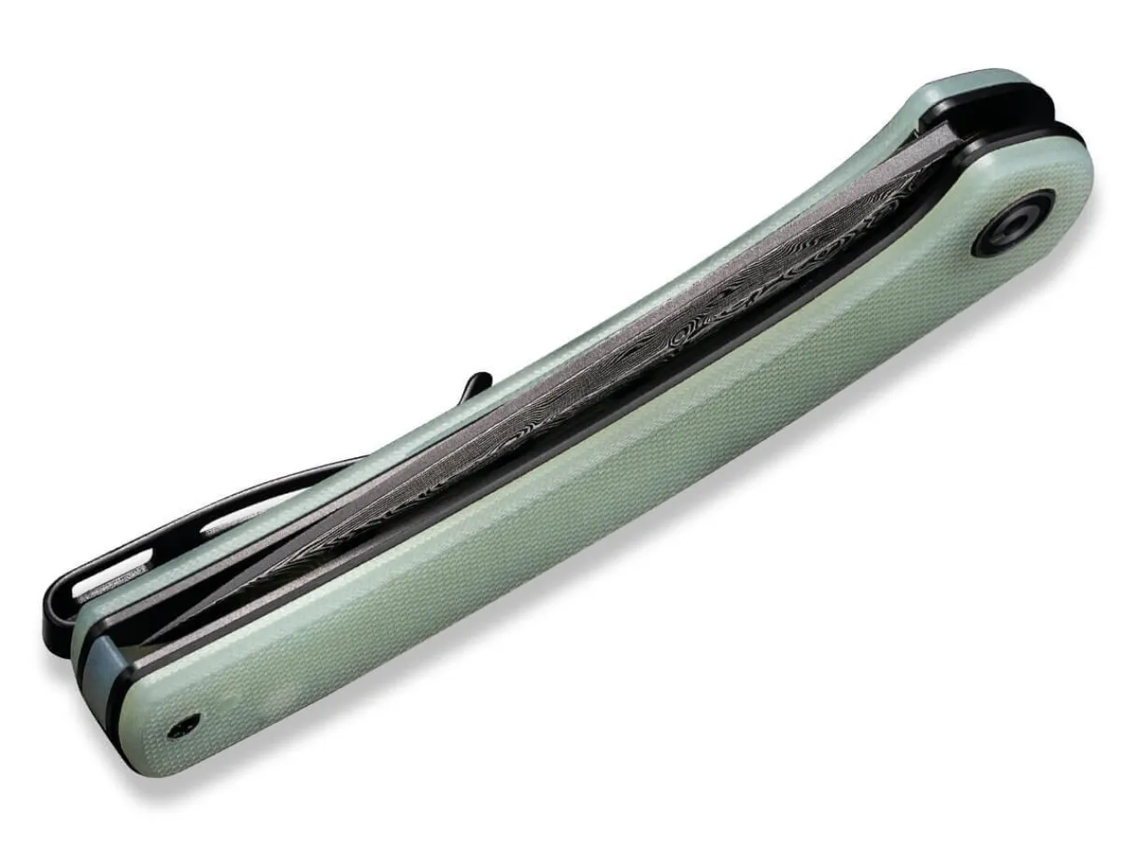 The Civivi Mini Asticus Underlines The New Urbanity And Presents Itself As An Elegant Edc Folder With A Ball-Bearing Blade Made Of Classy Damascus And A Jade-Green Handle Made Of G10. The Structural Change Finds Expression In The Flipper And The Distinguished Linerlock And Is Rounded Off By The Stainless Steel Clip (Tip-Up/R).