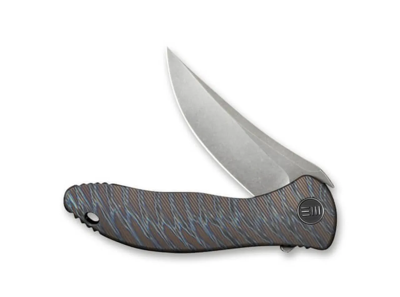 We Knife Joins Forces And Presents The Little Brother Of The Synergy. The We Knife Mini Synergy Titan Tiger Stripe Convinces With Its Clever Material Mix Of Powder Metallurgy Cpm-20Cv Blade And The High-Quality Handle Made Of Titanium In A Classy Striped Pattern. The Easy And Safe Handling Of The Knife Is Guaranteed By The Flipper Opening And The Framelock. Supplied With A Clip (Tip-Up/R) And A Lanyard Hole.
