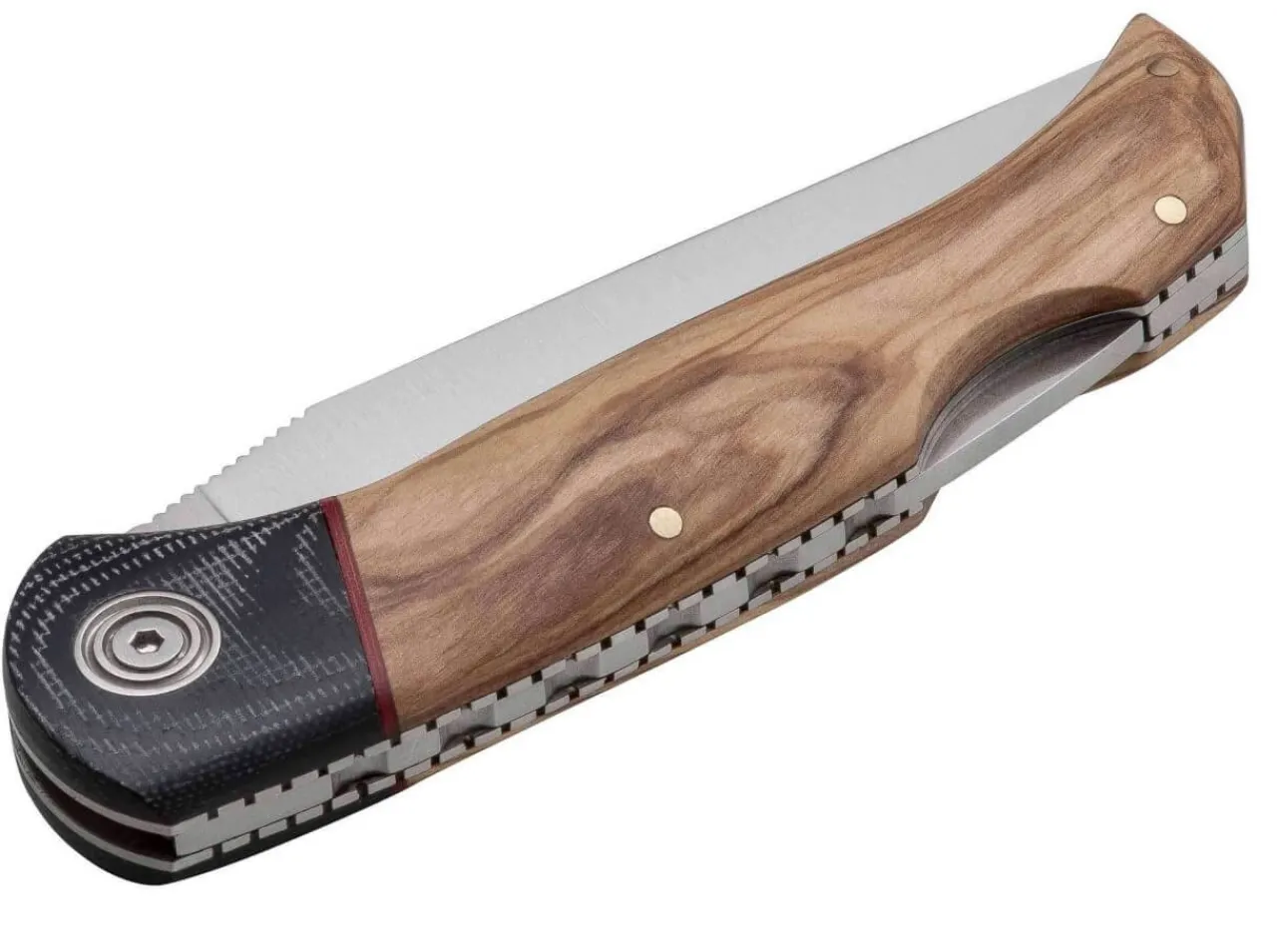 The Special Appeal Of These Pocket Knives Is In Their Unusual Combination Of Olive Wood Scales And Black Mircata As The Bolster Materials, Which Are Spaced By A Red Fiber Insert. The Artistic Filework On The Grip Spine Contributes Its Share To The Knife’S Exclusivity. Satin-Finished 4116 Blade Steel Blade. Lock Back Mechanism.