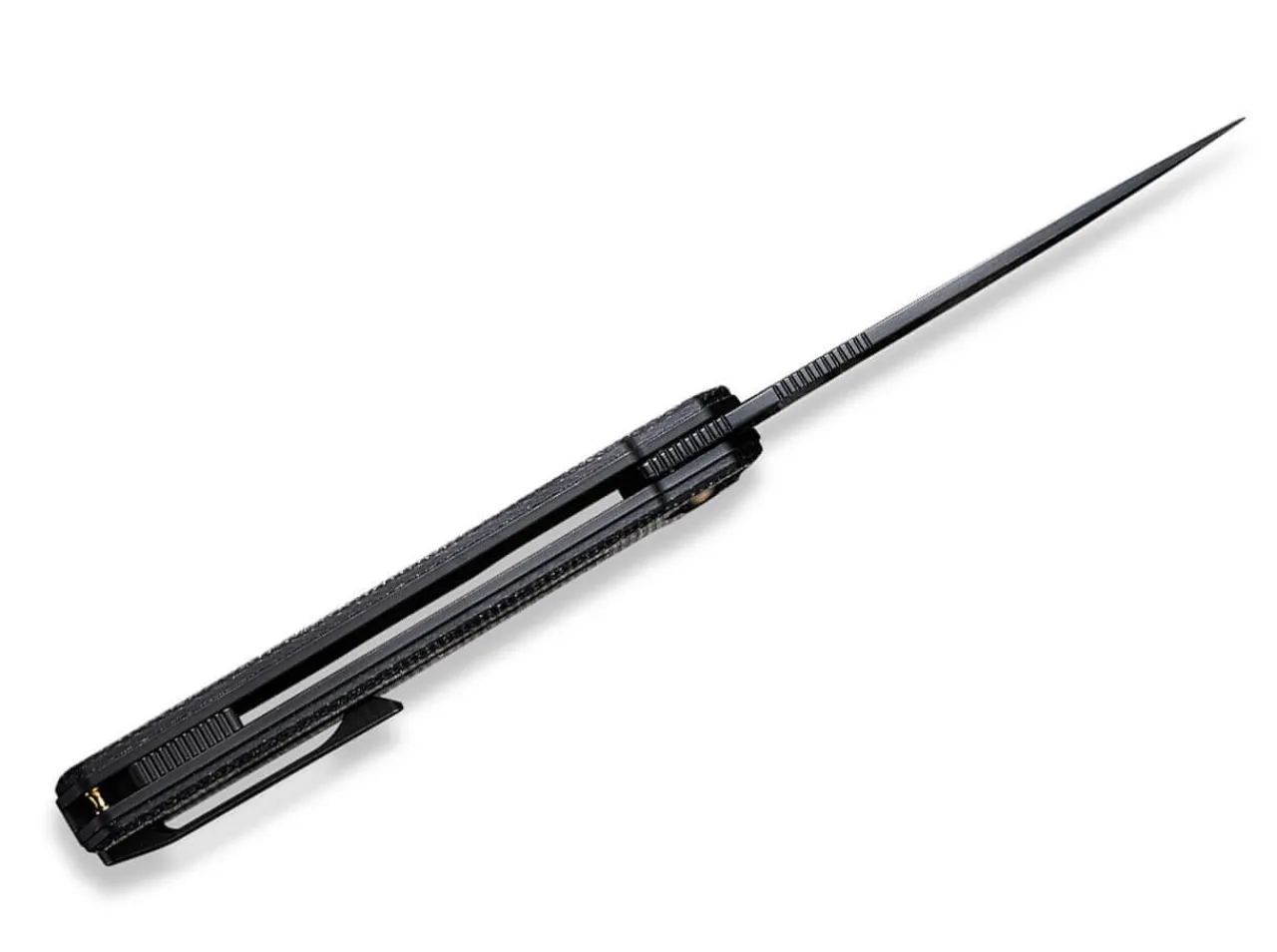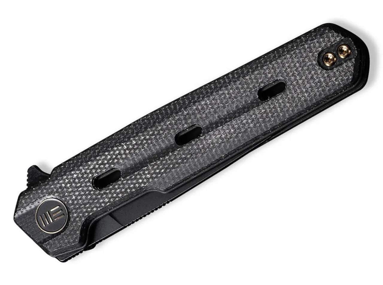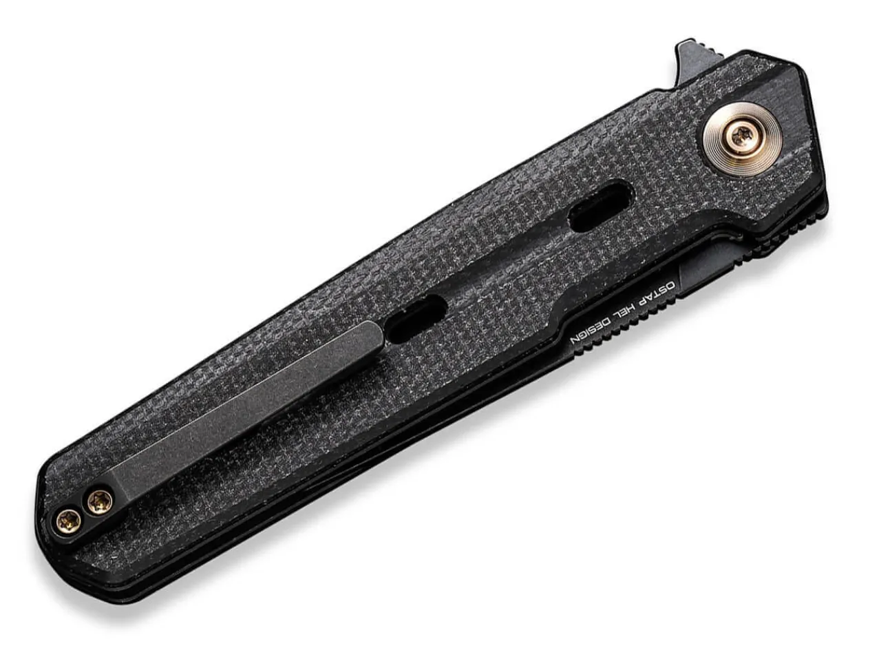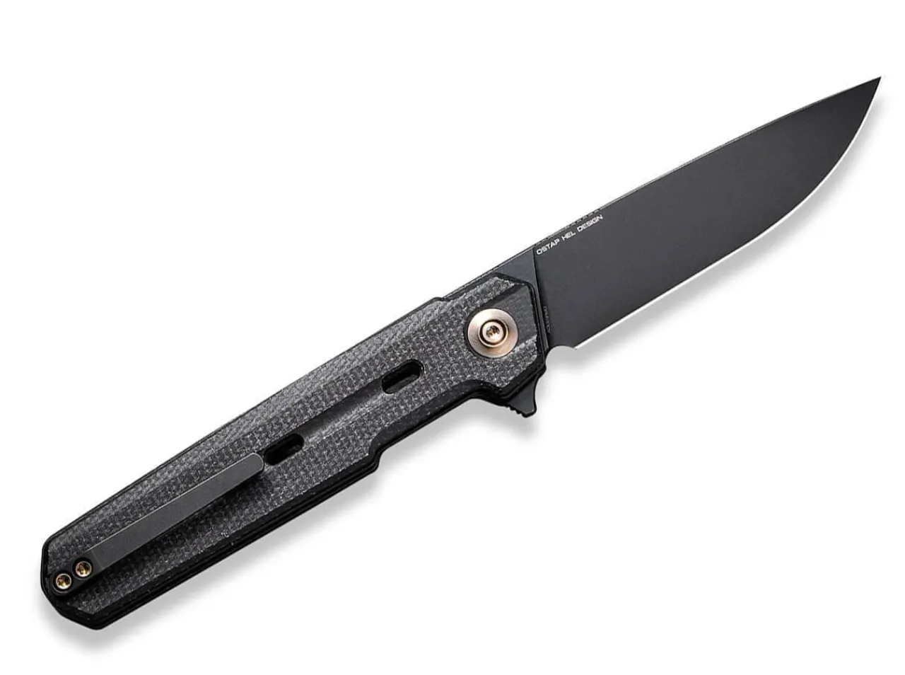 Discretion And Restraint Are Put To The Back Of The We Knife Navo And Emphasize Above All High Functionality, Eye-Catching Design And Reduction To The Essentials. Ostap Hel Uses The Proven, Powder-Metallurgical Cpm-20Cv Steel For His Design And Provides The Ball-Bearing Droppoint Blade With A Rough Black Stonewash Finish. The Gentleman’S Knife Is Opened By A Flipper, While The Solid Liner Lock Reliably Secures The Blade. The Decorative Openings In The Black Micarta Handle Are Striking, Which Both Increase The Grip And Reduce The Weight. The Self-Confident Appearance Is Rounded Off By The Backspacer And Tip-Up Clip (R) Made Of Titanium And The Gold-Colored Screws.