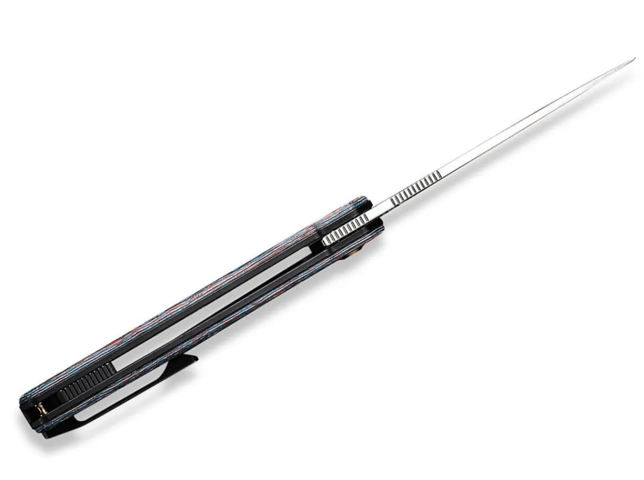 Discretion And Restraint Are Put To The Back Of The We Knife Navo And Emphasize Above All High Functionality, Eye-Catching Design And Reduction To The Essentials. Ostap Hel Uses The Proven, Powder-Metallurgical Cpm-20Cv Steel For His Design And Provides The Ball-Bearing Droppoint Blade With A Noble Satin Finish. The Gentleman’S Knife Is Opened By A Flipper, While The Solid Liner Lock Reliably Secures The Blade. The Decorative Openings In The Colorful Carbon Handle, Which Both Increase The Grip And Reduce The Weight, Are Striking. The Self-Confident Appearance Is Rounded Off By The Backspacer And Tip-Up Clip (R) Made Of Titanium And The Gold Anodized Screws.