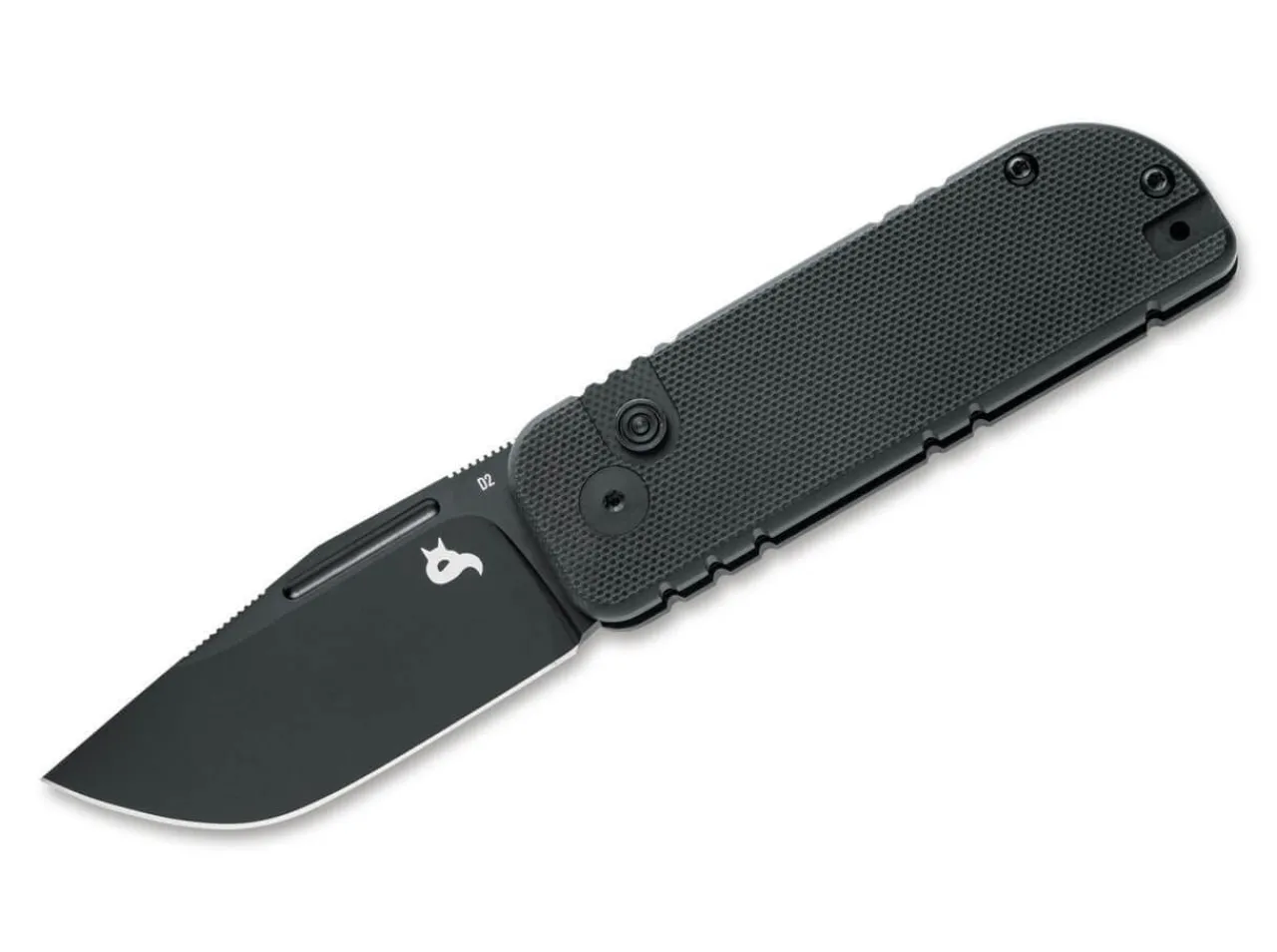 The Blackfox Nu-Bowie By Kean Alfaro Defines The Bowie Knife In Its Very Own Way. The Blade With Its Slightly Curved Shape Discreetly Hints At The Origin Of The Name, But Keeps Anything But Covered In Terms Of Performance. The All-Black Edc Knife Opens The D2 Blade By Nail Nick And Is Unlocked Again By The Button Lock. The Textured G10 Handle Scales Fit Comfortably In The Hand And The Jimping On The Back Of The Blade Provides Additional Gripping Surface. With Convertible Tip-Up Clip.