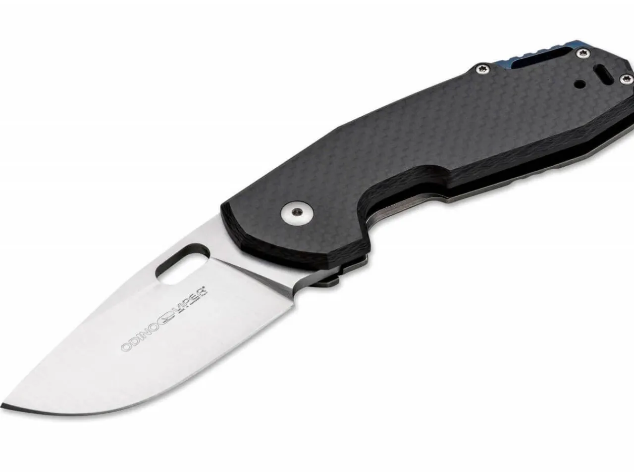 The Name Odino Is A Reference To Odin, The Principal Norse God, And Therefore Also To The Origin Of The Design, Pointing To Jesper Voxnaes From Denmark, Whose Handwriting Is Easily Recognized Here As Well. The Wide, Almost Fully Flat Ground Blade Combines Strength And Utility, And The Grip Of The Framelock Handles Well. The Deep Index Finger Pocket Provides Considerable Grip Safety. The Odino Is Good To Have For Any Chore, Including Hunting, Outdoors, In Daily Use, Or During Lunch Break. The Distinctive Lanyard Hole, Which Is Integrated Into The Titanium Spacer, And The Adjustable Clip Round Out The Premium Features. N690 Blade Steel. Titanium Framelock With Carbon Front Scale. Satin Finish Blade.