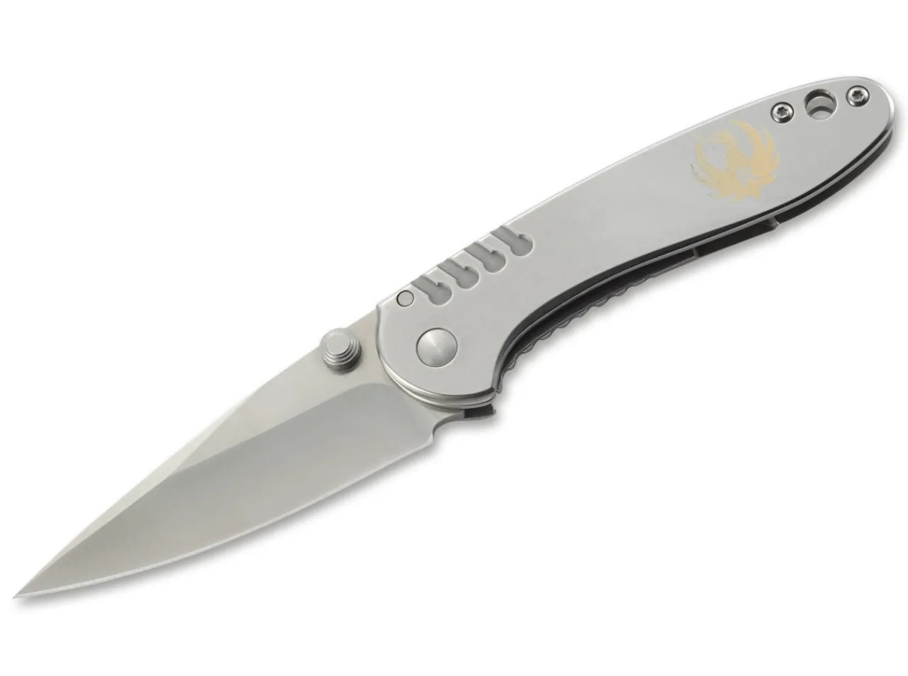 The Ruger Over-Bore Is A Compact And Elegant Edc And Gentleman Knife With Stainless Steel Handle And Frame Lock. The Striking Ruger Logo Adorns The Front Handle Scale. With Removable Clip (Tip-Down).