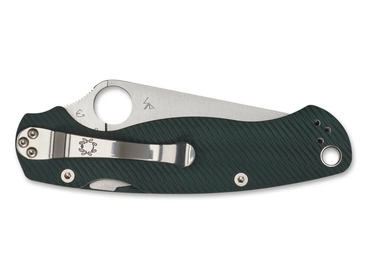 Das Spyderco Para-Military 2 Ist Die Uberarbeitete Version Des Para-Military Und Bietet Einen Etwas Schmaleren Griff Fur Eine Bessere Ergonomie. In Dieser Version Ist Es Mit Einer Flachgeschliffenen Klinge Aus Pulvermetallurgischem Cpm-S-45Vn Ausgestattet, Einem Hochleistungsstahl Mit Einer Ausergewohnlich Homogenen Kornstruktur. Die Waldgrunen Griffschalen Aus G10 Sind Mit Einem Cnc-Gefrasten Diamantbogen-Muster Versehen, Das Dem Messer Eine Optisch Beeindruckende Und Zugleich Rutschfeste Textur Verleiht. Mit Extrem Zuverlassigem Compression-Lock Und Vierfach Umsetzbarem Clip.