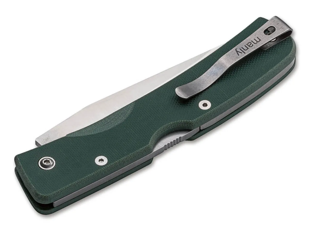 Das Manly Peak Ist Ein Vielfaltiges Taschenmesser Fur Den Alltag, Das In Zahlreichen Unterschiedlichen Varianten Erhaltlich Ist. Die Satinierte Klinge Dieser Ausfuhrung Wird Aus D2 Gefertigt Und Verzichtet Auf Eine Offnungshilfe. Die Verriegelung Ubernimmt Ein Stabiler Backlock. Die Rutschfesten Griffschalen Bestehen Aus Texturiertem G10. Die Farbe Military Green, In Der Das Peak Exklusiv Ausschlieslich Uber Boker Erhaltlich Ist, Passt Ausgezeichnet Zum Rustikalen Charme, Den Die Messer Von Manly Verbreiten. Der Umsetzbare Clip (Tip-Up/L-R) Ermoglicht Das Tragen Fur Links- Wie Auch Rechtshander.