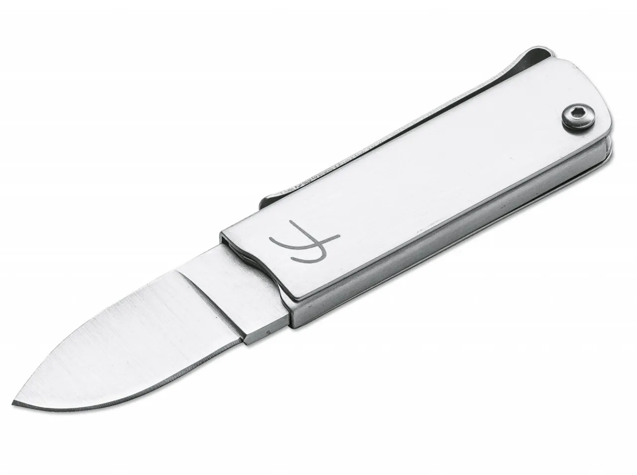 This Model Is An Original Folding Knife With A Clever Mechanism. In Order To Open It, You Unfold The Outer Handle Shell Of The Steel Construction, Then Unfold The Blade From The Interior Handle Element, And Then Lock It With The External Handle Shell. Blade Made From 440C Steel. Delivery Includes A Small Nylon Case And Red Lanyard.