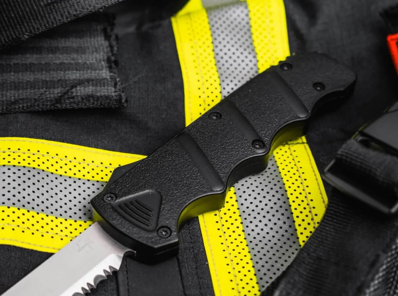 The Heart Of The Rescue Tool Is A Classic Jumping Mechanism With Thumb Slide, Which Allows The Blade To Spring Out Powerfully When Activated Or To Slide Back Completely Into The Handle. The Absolutely Reliable And Proven Mechanism With A Powerful Spring Was Adopted From The Otfs Of The Jumping Knife Series Kalashnikov, Which Boker Has Been Selling Abroad For Many Years, E.G. In France Or In The Usa.
