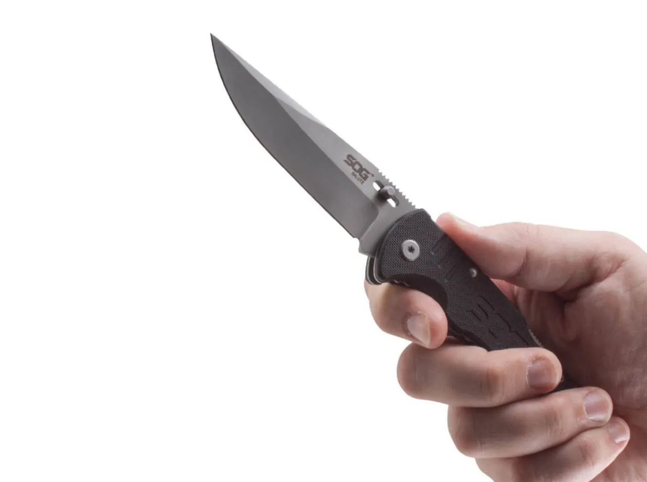 The Sog Salute Is A Sturdy Tactical Folder Which, Thanks To Its Structured G10 Handle Scales, Lies Securely In The Hand Even In Bad Weather Conditions. The 8Cr13Mov Blade Locks With A Backlock And Is Opened Using The Movable Thumb Stud. With Deep Carry Clip (Tip-Up) And Lanyard Hole.