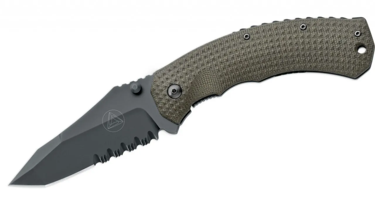 The Sr-11 Is A Massive, But Nevertheless Low-Profile Titanium Frame Lock, Whose Front Scale From Cnc-Milled Green Canvas Mircata Guarantees An Extremely Secure And Non-Slip Grip. The Black Idroglider Coated Tanto Blade Is Made From N690 And Features Extremely Aggressive Partial Separation. Outstanding Ergonomics Are Provided By The Rear Sloping Handle. Reversible Clip (Tip-Up, Tip-Down).