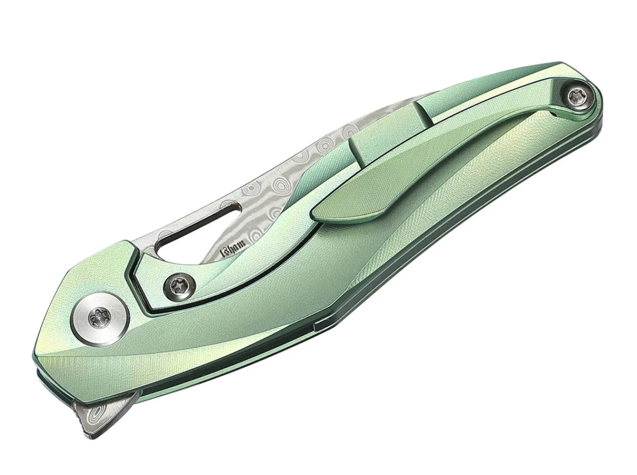 The Bestech Product Range Now Features Another Eye-Catcher. The Extremely Compact Reticulan By Elijah Isham Is Equipped With An Extraordinary Damascus Blade And A Shimmering Green Titanium Handle. The Handle Features Slim, Curved Lines, An Elaborately Milled Surface And A Deep Finger Choil. The Blade Opens With A Thumb Opening Or Flipper And Is Secured With A Sturdy Framelock. The Modern Pocketknife Combines A Futuristic Design With Premium Materials. With The Included Kydex Sheath, The Knife Can Also Be Worn As A Neck Knife. With A Clip (Tip-Up).