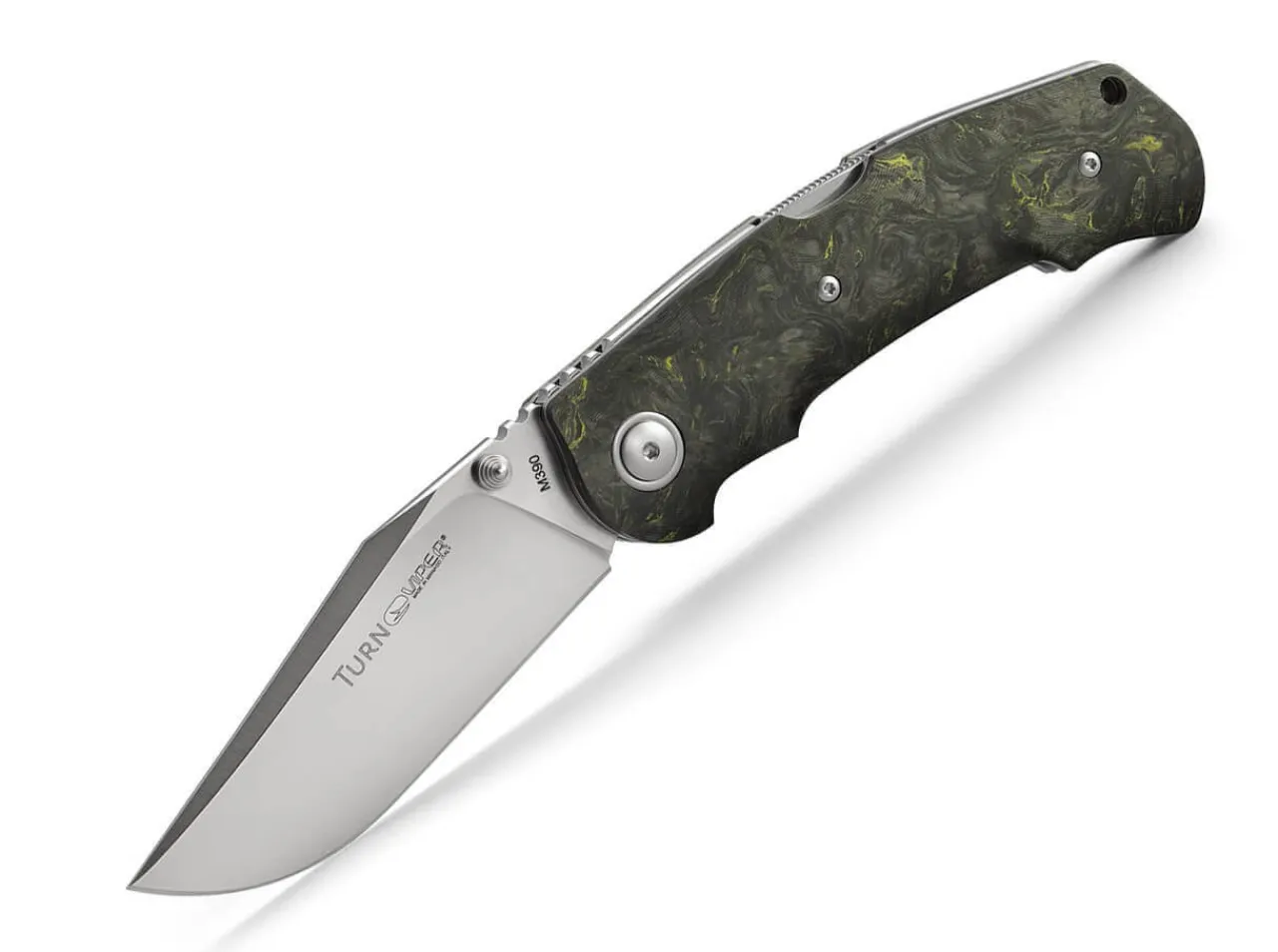 Always On The Right Track Is The Elegant Viper Turn Cf Yellow. The Extremely Robust Blade Made Of M390 Is Opened By Thumb Pin And Makes With The Help Of The Stable Stainless Steel Backlock After Work Is Done. The Yellow Interspersed Handle Made Of Carbon Fiber Is Ergonomically Shaped And Lies Securely In The Hand. With Lanyard Loop And Noble Titanium Clip (Tip-Up/R).
