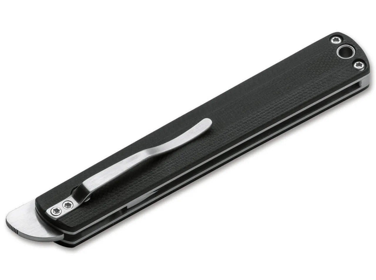 The Slender Build And Lightweight Construction Of The Boker Plus Wasabi Complement The Straightforward Design And Classic Japanese Blade To Make An Elegant Everyday Knife. The Blade With Ball Bearings Opens With A Front Flipper And Is Kept Open As A Slipjoint With A Detent Ball. The Blade Is Made Of Reliable 440C. Handle With Stainless Liners And Scales Of Black G10. With Milled Clip And High-Quality Nylon Case For Storage.