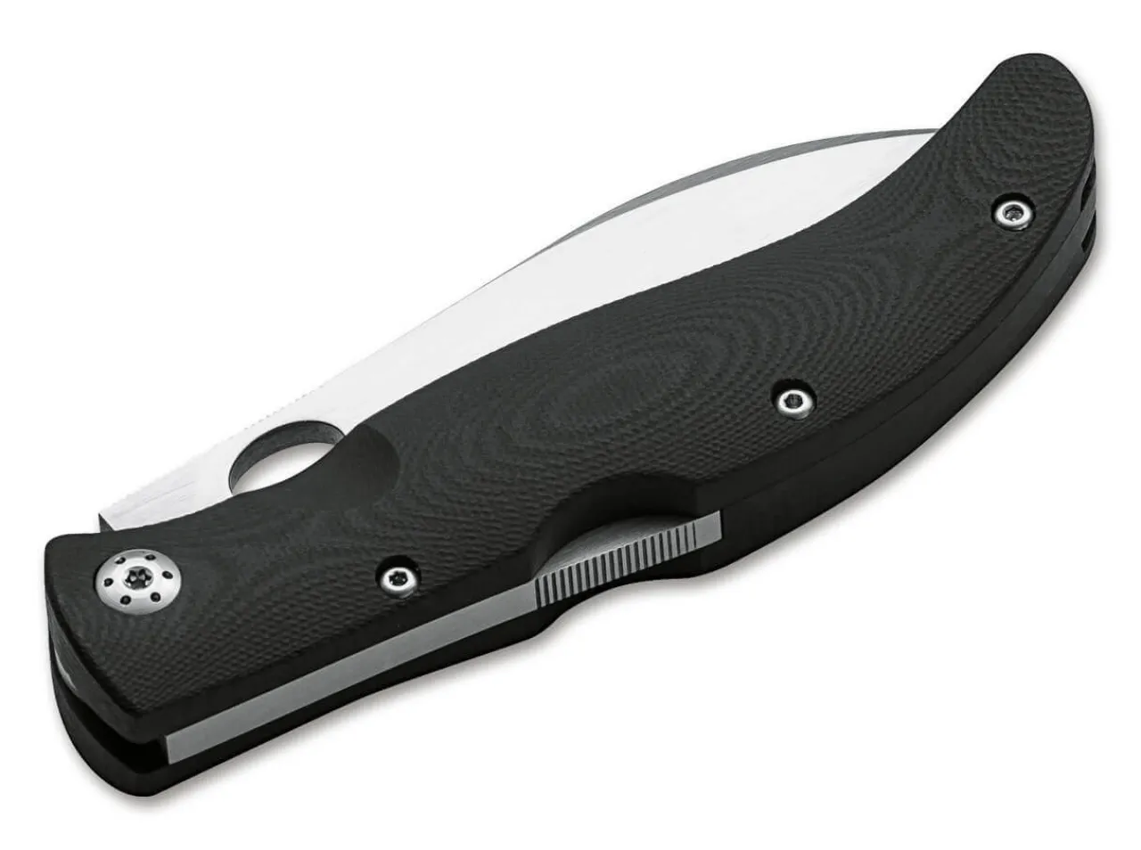 The Lightweight But Very Sturdy Boker Plus Yukon Is Perfect As An Easy-To-Use Everyday Knife Or Compact Hunting And Outdoor Knife. The Almost Convex Blade Of 440C Is Secured With A New Patented Backlock Based On A Space-Saving Wire Bracket. The Lock Doesn’T Need A Top Spring So That The Blade Has Significantly More Room In The Handle. It Has A Fine Hairline Finish And Locks With An Extremely Sonorous Clicking Sound. The Black Handle Scales Are Made From Lightweight G10. With Their Textured Surface And Ergonomic Shape, The Knife Offers A Secure Grip Even In Bad Weather. The Ridged Thumb Rest And Hidden Lanyard Hole Finish The Design. No Clip.