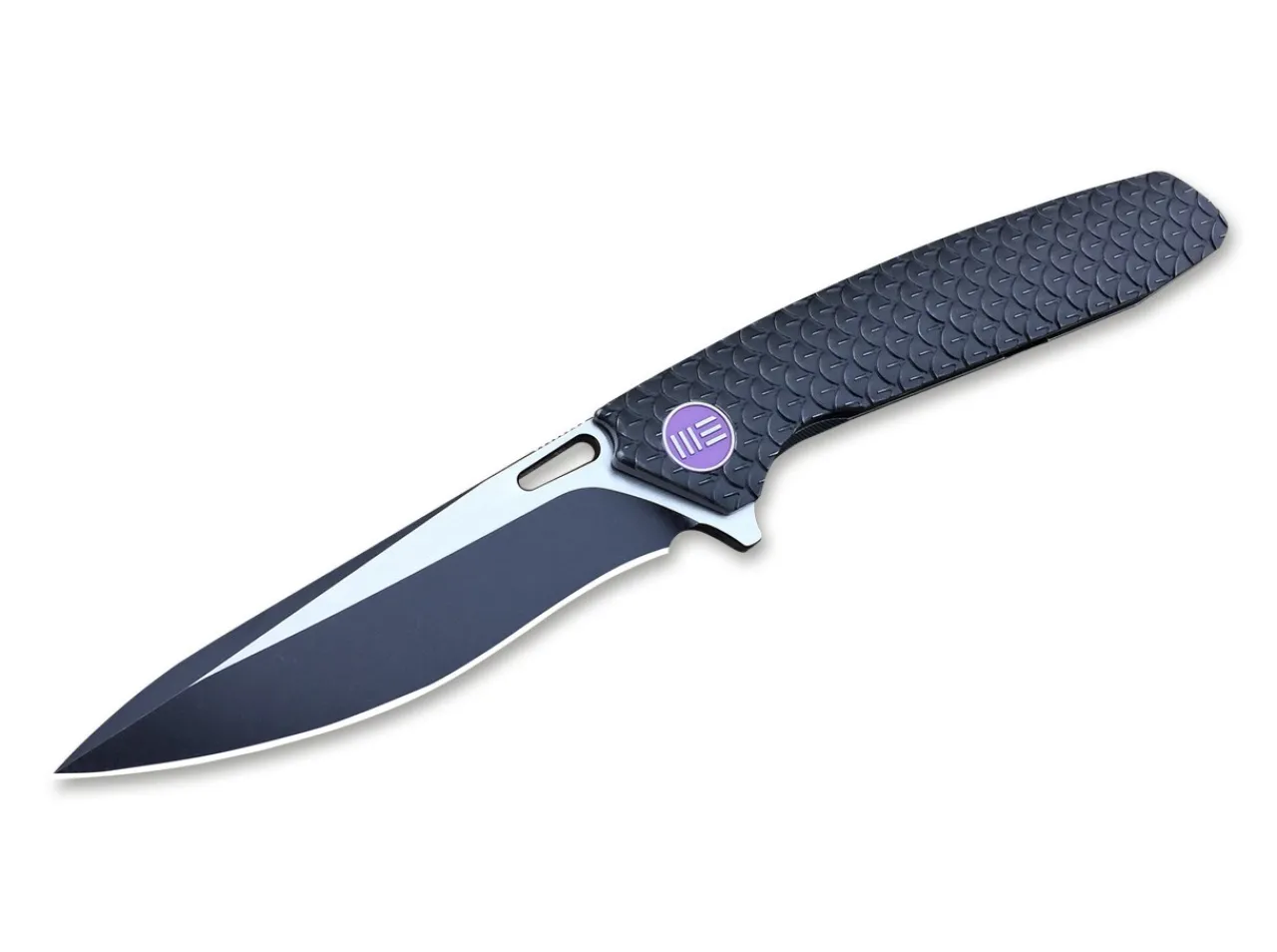 The We Knife 604 Is A Rather Sturdy Pocketknife With Titanium Handle Featuring A Milled Scale-Like Pattern. The Textured Surface Offers A Very Pleasant And Secure Grip. The Handle, Spacer, Clip And Screws Also Consist Of Titanium. The Partially Coated Two-Tone Blade With Flipper Is Made From Cpm-S-35Vn Resting On Ceramic Ball Bearings.