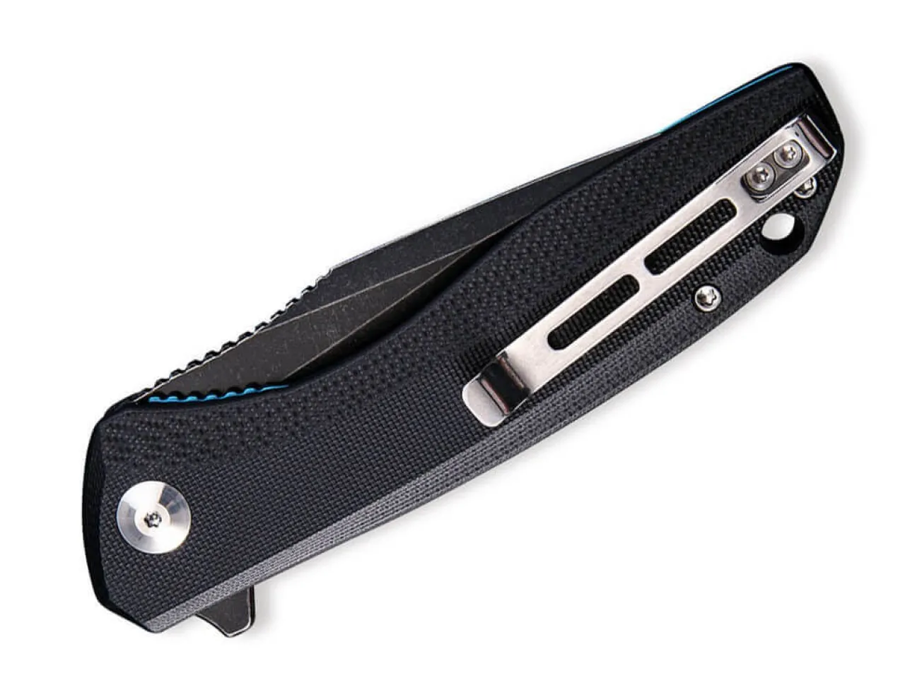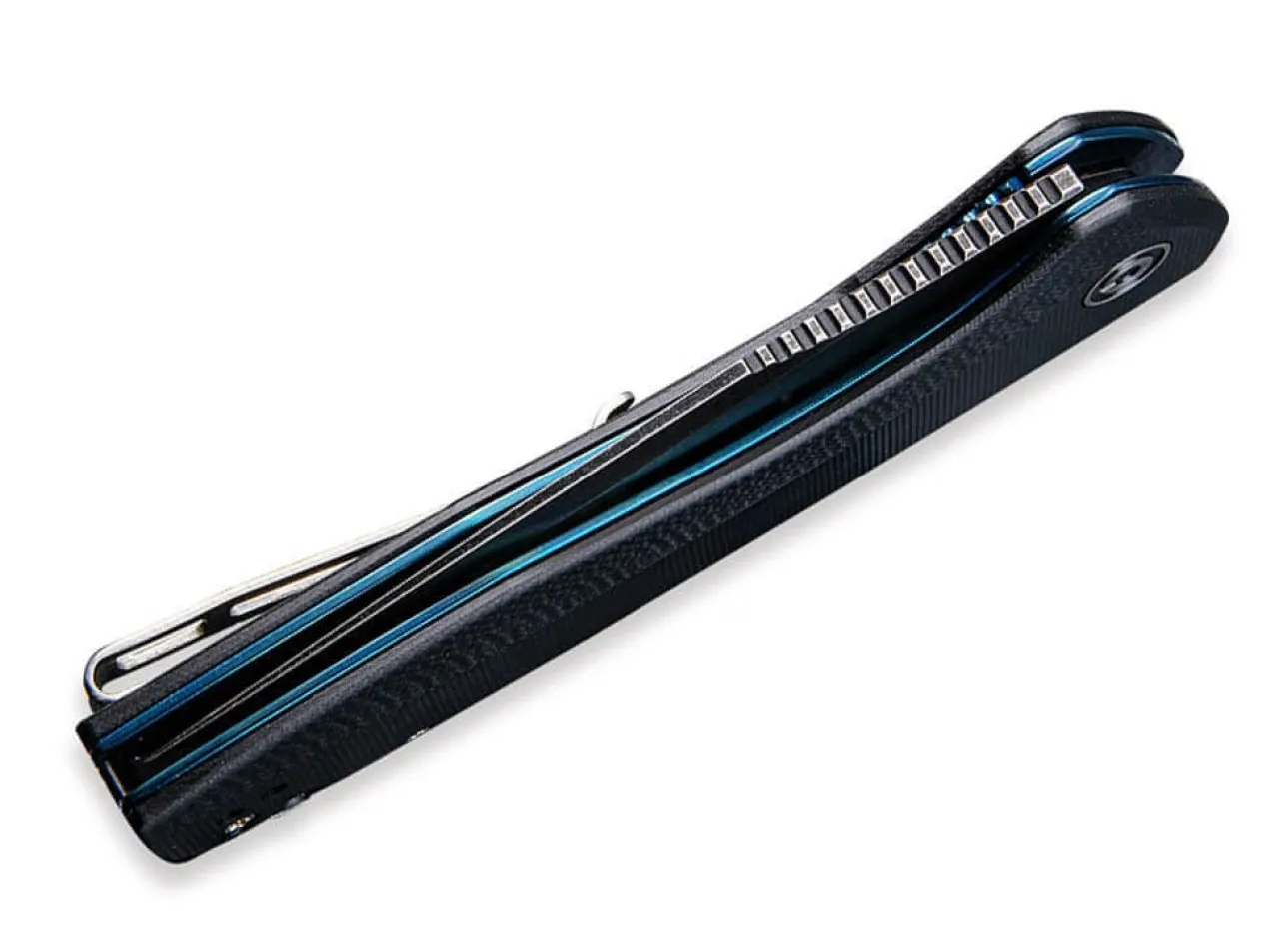 Das Civivi Backlash Ist Mit Einer Hohl Geschliffenen Droppoint-Klinge Aus Rostfreiem 9Cr18M0V Ausgestattet, Die Mit Einem Dunklen Stonewash-Finish Versehen Ist Und Per Flipper Geoffnet Wird. Die Griffschalen Bestehen Aus Schwarzem G10, Der Blaue Liner Setzt Einen Reizvollen Farblichen Akzent. Mit Umsetzbarem Clip (Tip-Up/L-R).
