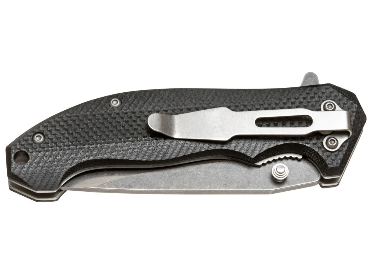 The Blade Made From 440A Stainless Steel Has A Subtle Two-Tone Finish And Can Be Opened Easily With One Hand Per Flipper Or Thumb Pin. The Black G-10 Handle Feels Very Pleasant And Safe In Your Hand. The Clip, The Liner Lock, And The Lanyard Hole Make It Even More Useful.