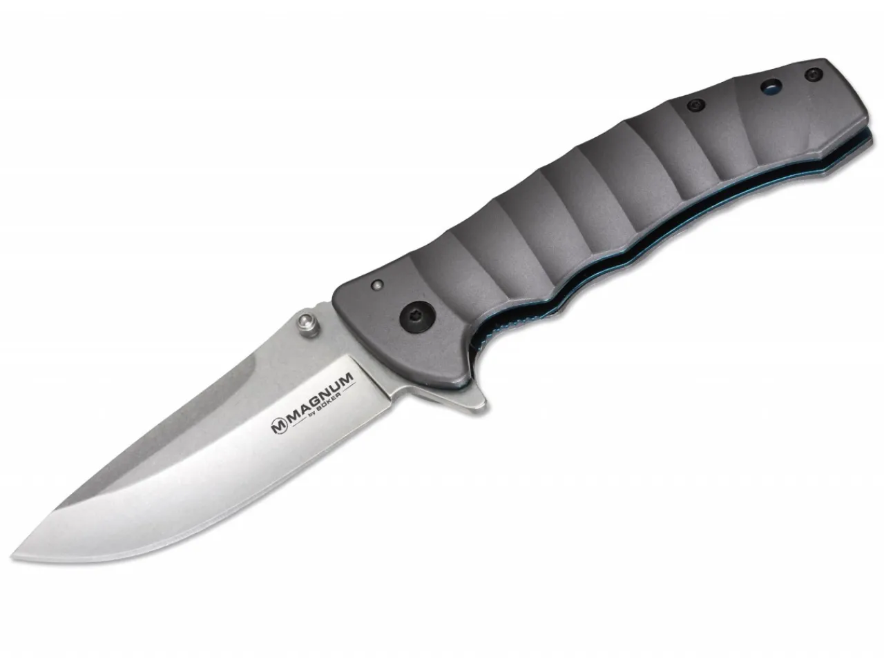 This Fully Grown Knife Impresses With Its Subtle Design And Great Functionality, Ensured In Part By The Versatile 440A Steel Blade With Stonewash Finish. The Wide And Strong Blade Opens Per Thumb Pin Or Flipper. Liner Lock With Blue Stainless Steel Plate. The Grey, Light Aluminum Scales Feel Pleasant In Your Hand. With Clip And Lanyard Hole.