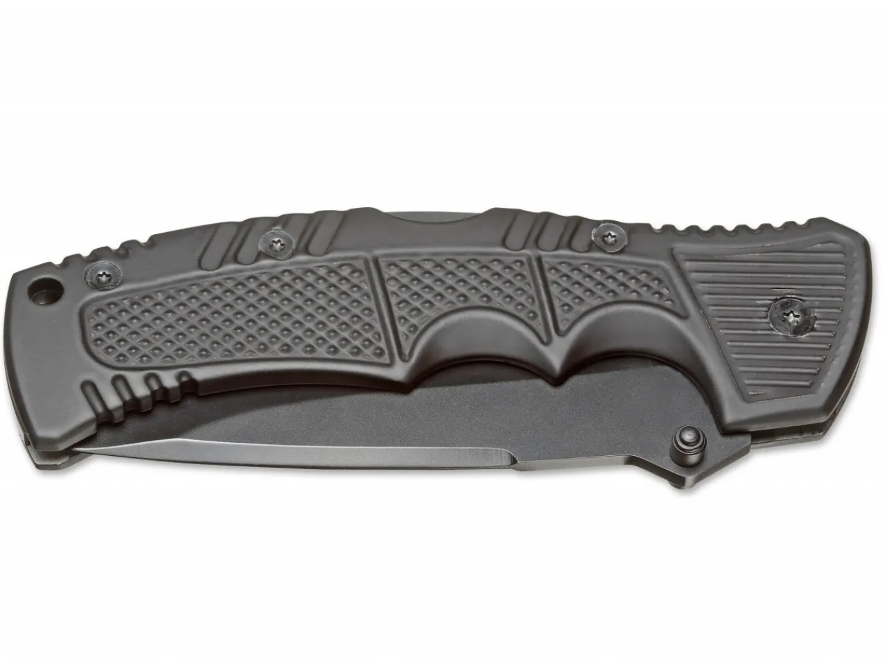 A Reliable And Robust Pocket Knife With Compact Construction.The Black Coated, Partially Serrated Blade Made Of 440A Stainless Steel Can Be Operated With One Hand And Is Secured With The Back Lock.Its Flat Construction And Rubberized Aluminum Handle Ensure A Secure Grip Without Taking Up Too Much Space.With Lanyard Hole.