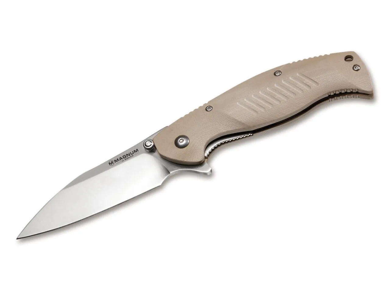 Suitable For Fine, Precise Work As Well As Tough Jobs.The Modified Wharncliffe Blade Has A Well Defined Tip For Fine Work, And The Tough 440B Steel Ensures Superior Edge Retention.The Sand Colored G10 Scales Are Reinforced With Stainless Steel Plates.With Pocket Clip And Lanyard Hole.