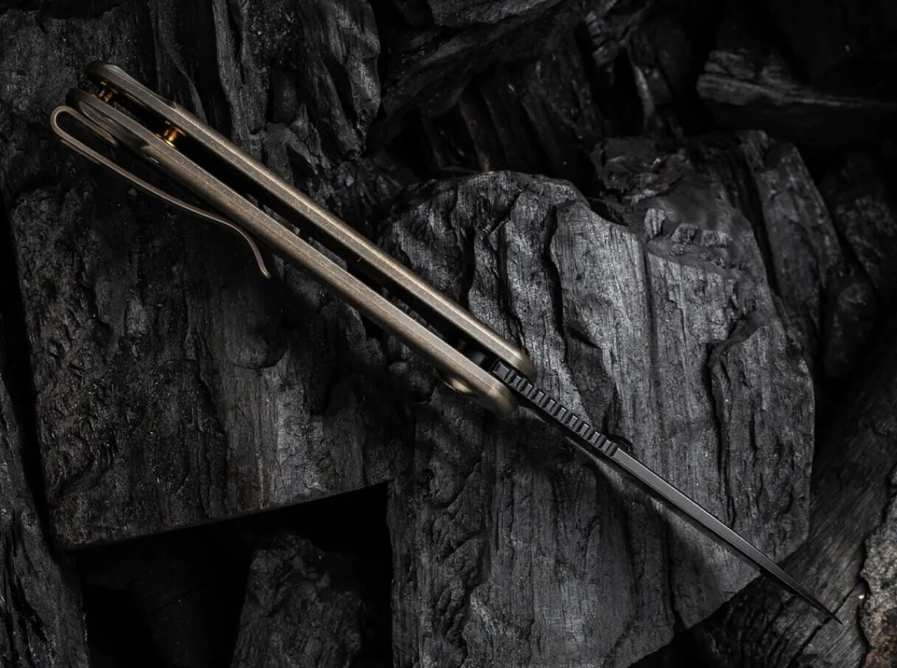 Das Elementum Von We Knife Ist Die Reinform Eines Edlen Framelock Folders. Die Pulvermetallurgische Cpm-20Cv Klinge Und Der Bronzefarbene Titangriff Bilden Eine Unzertrennliche Einheit, Die Nur Bei Betatigen Der Flipper-Offnung Und Des Stabilen Framelocks Ihren Aggregatszustand Andert. Doch Aufgepasst: Das Elegante Messer MitClip (Tip-Up/R) Lost Eine Ungeahnte Reaktion Der Begierde Beim Betrachter Aus.