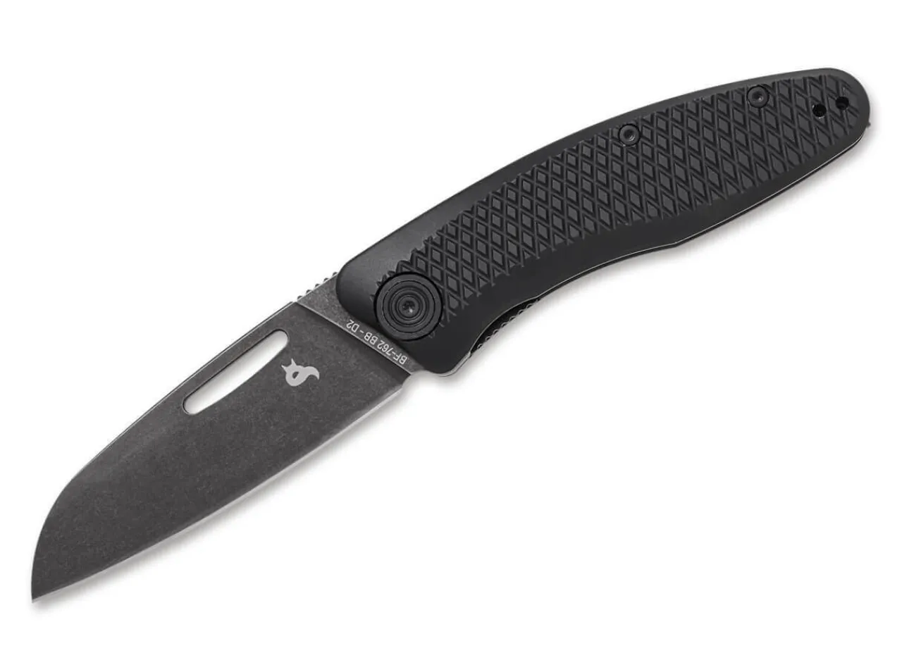 The Fereza, Suitable For Everyday Use, Is Equipped With A Black Coated Sheepfoot Blade Made Of D2, Which Opens Via Thumbhole And Is Held In Place By The Robust Liner Lock. Jimpings On The Back Of The Blade Further Increase Work Safety. The Sturdy Black Aluminum Handle Features A Non-Slip Texture For Maximum Grip. With Convertible Tip-Up Clip.